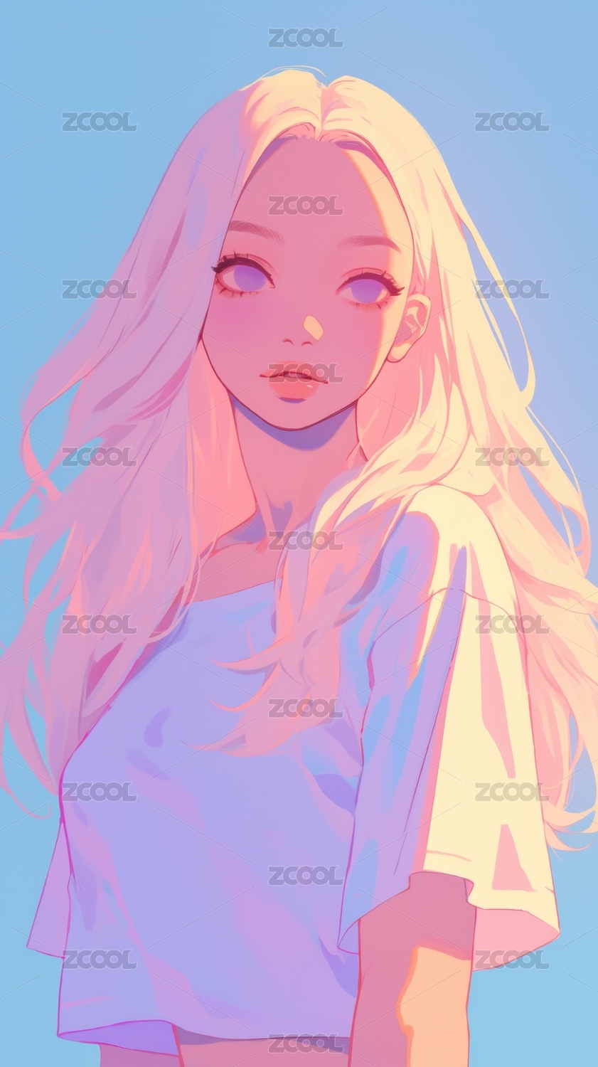 自然,清新,色彩,背景,长发,表情,绘画,插画,光影,线条