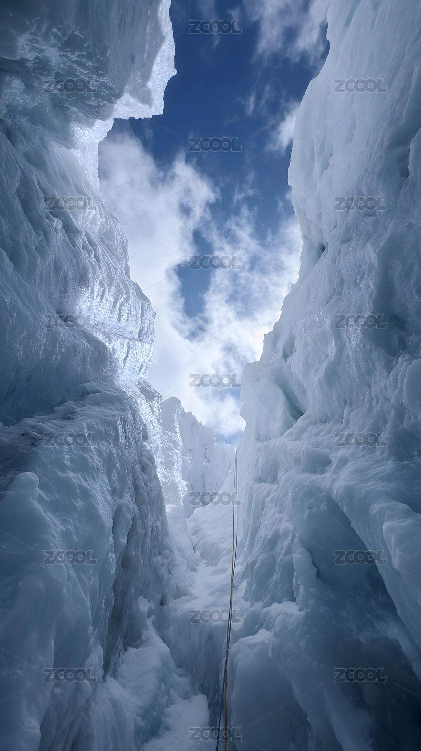 冰川峡谷仰视天空缆绳