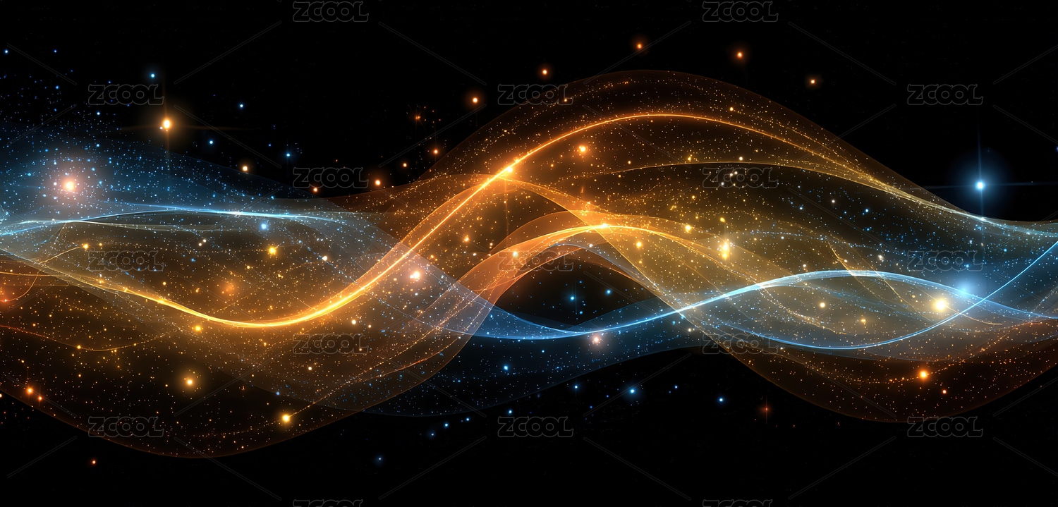 金色波浪光穿梭星空