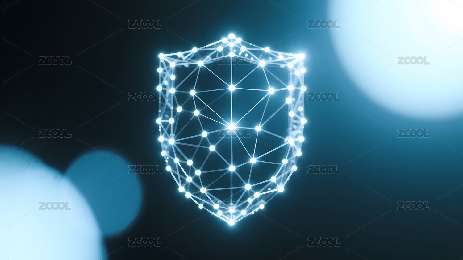 蓝色,科技,线条,盾牌,几何,发光,未来,对称,多面体,节点