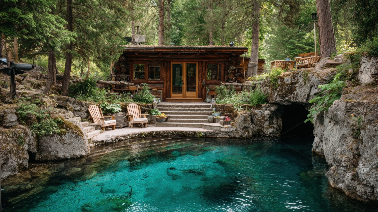 湖畔小屋的静谧之夜 山间小屋的温馨灯火