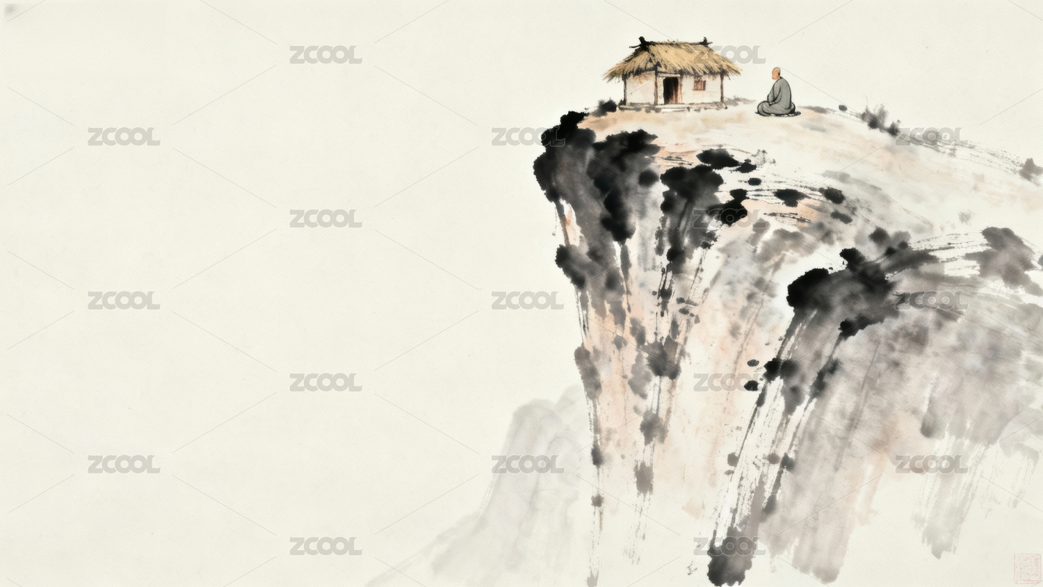 山崖水墨画
