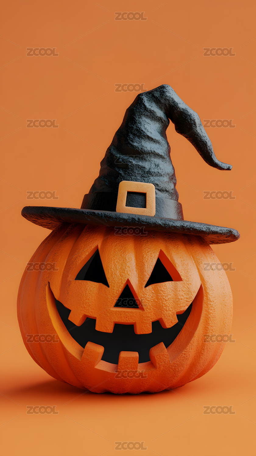万圣节南瓜巫师帽3D渲染图