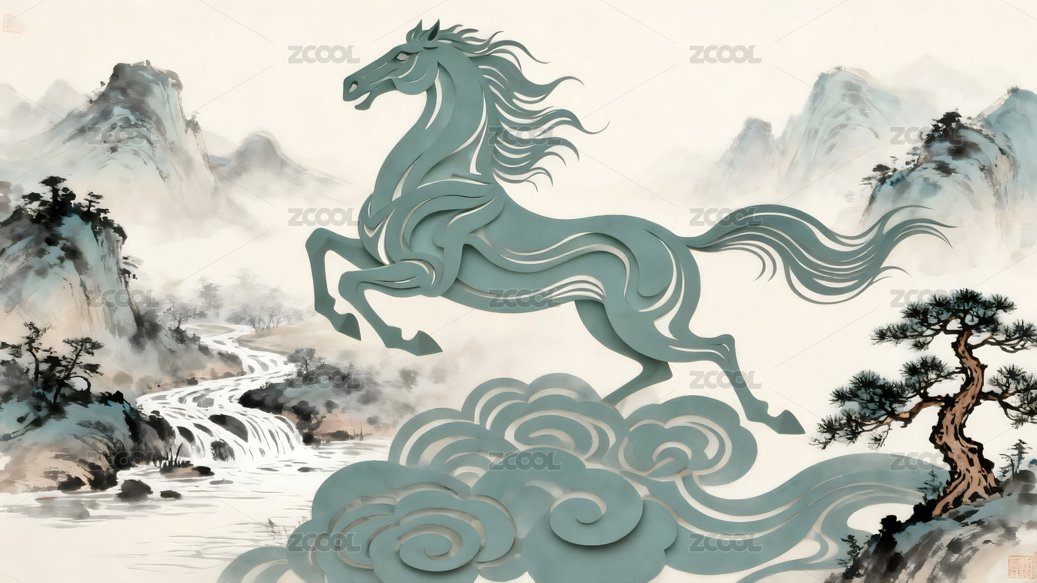 奔马国风感艺术场景