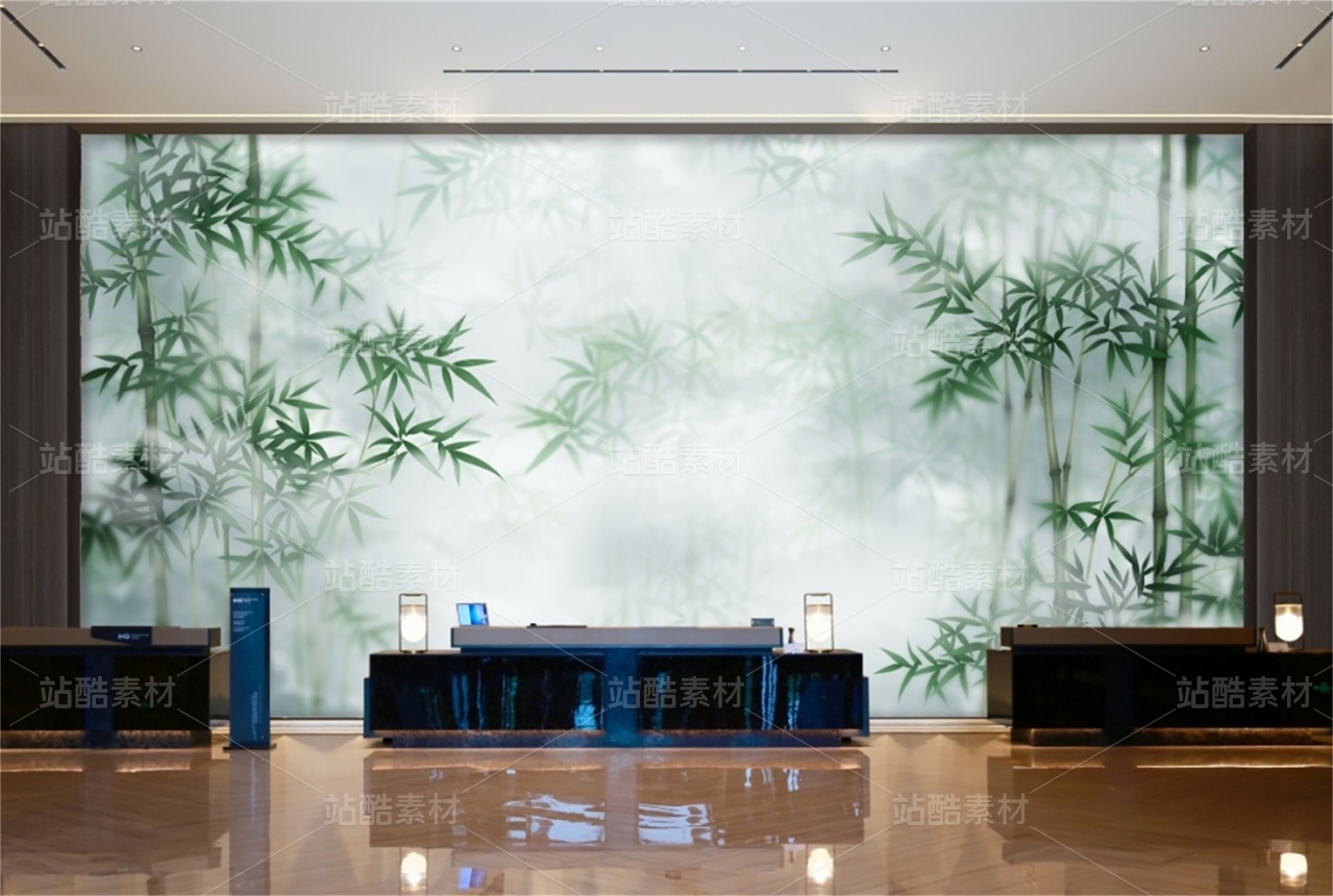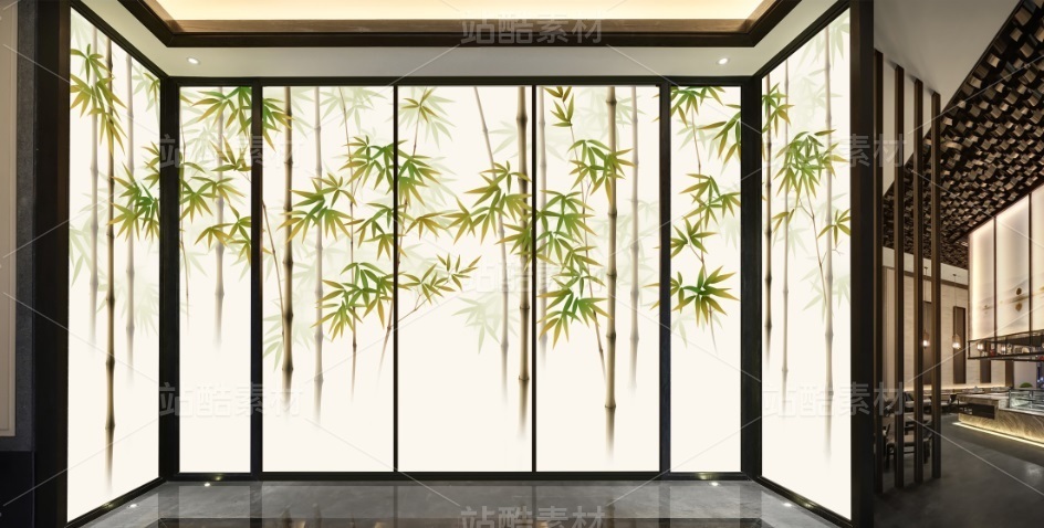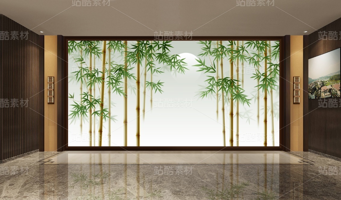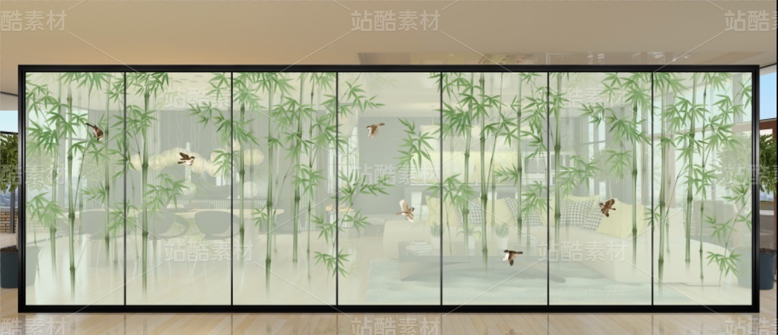 抽象竹鸟装饰画 新中式竹子画 朦胧巨型竹子 适用于家装,酒店,文化场所等,用于做:背景墙、隔断、移门,屏风、玄关。高清分层图可以用UV打印。