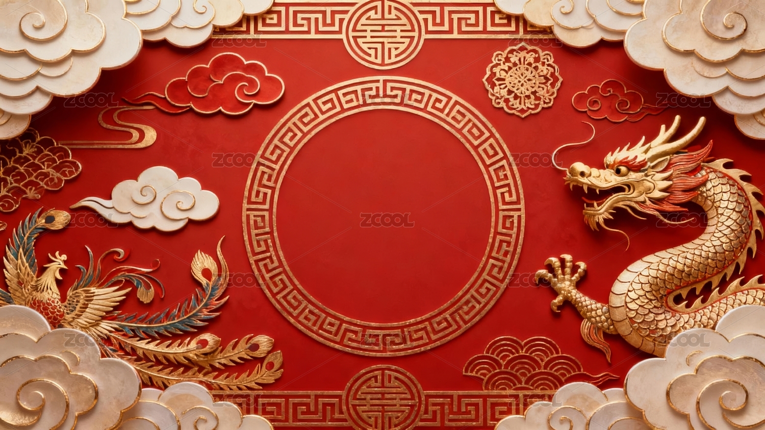 主视觉,商业,壁纸,金色,神龙,红色,喜庆,场景,传统,祥瑞