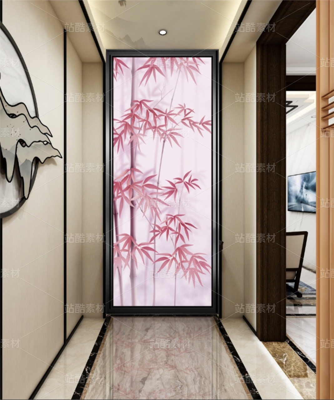 抽象竹鸟装饰画 新中式竹子画 朦胧巨型竹子 适用于家装,酒店,文化场所等,用于做:背景墙、隔断、移门,屏风、玄关。高清分层图可以用UV打印。