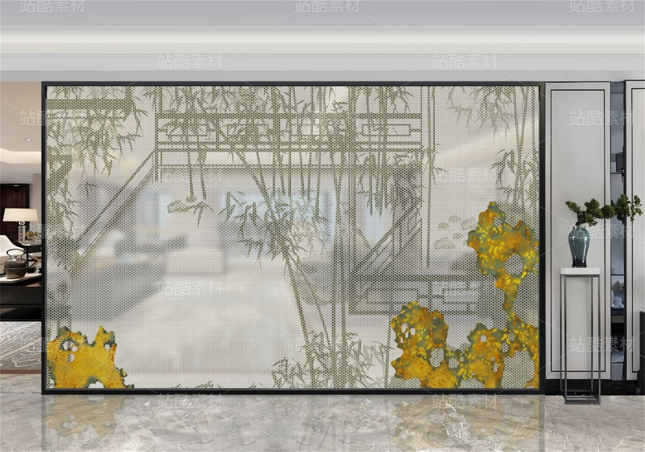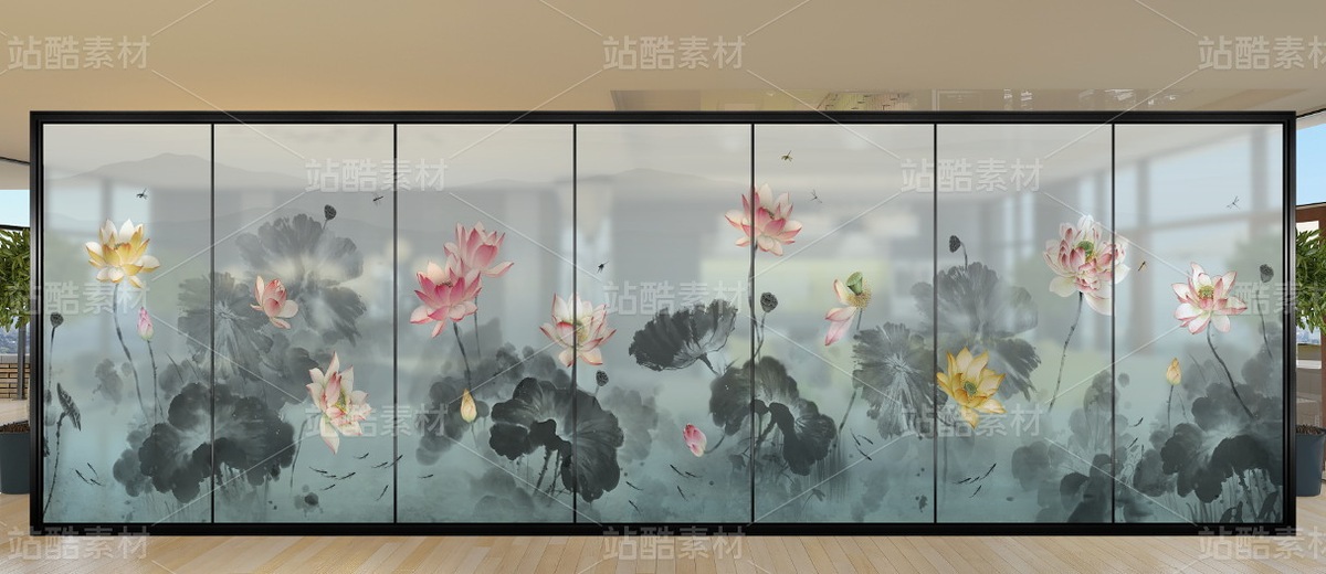 抽象花鸟装饰画 水墨荷花 朦胧巨型荷花 适用于家装,酒店,文化场所等,用于做:背景墙、隔断、移门,屏风、玄关。高清分层图可以用UV打印。