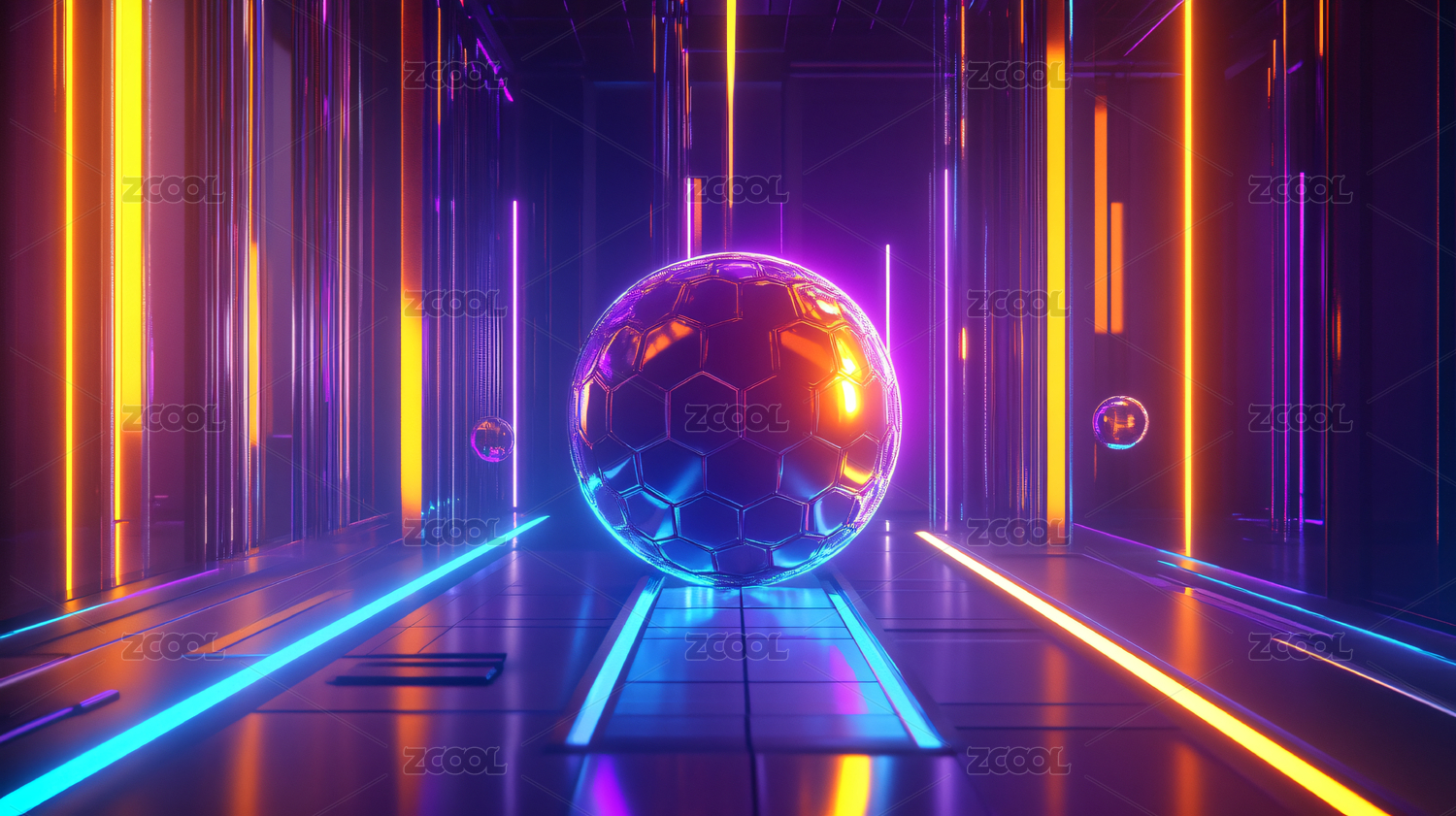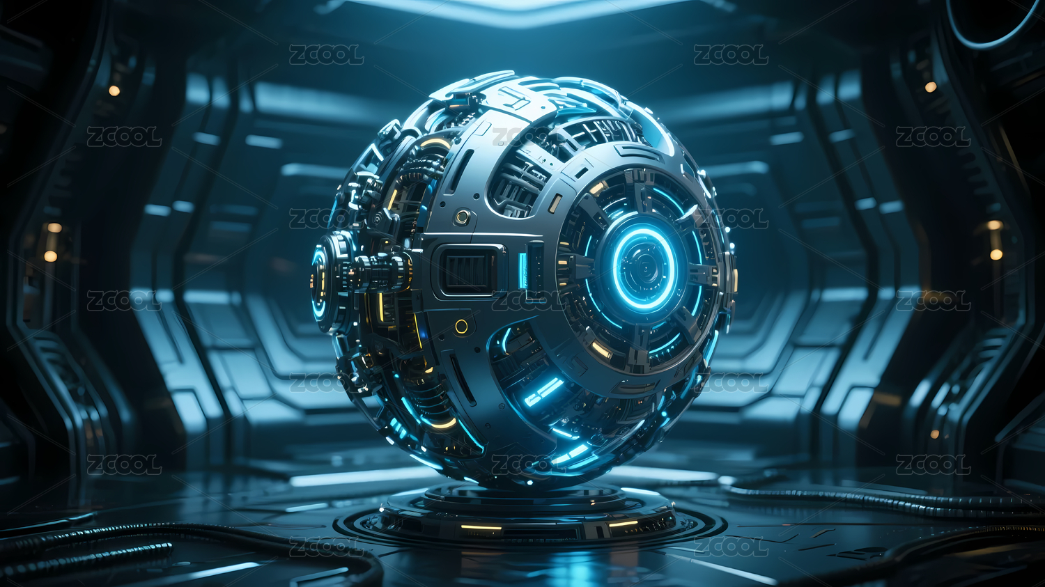 未来,科技,发光,蛋形,几何,蓝色,通道,金属,墙面,灯光