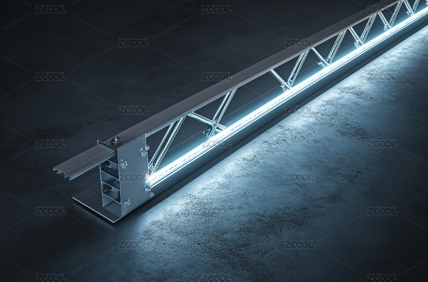 深色岩石地砖地面与钢架结构背景 三维渲染
