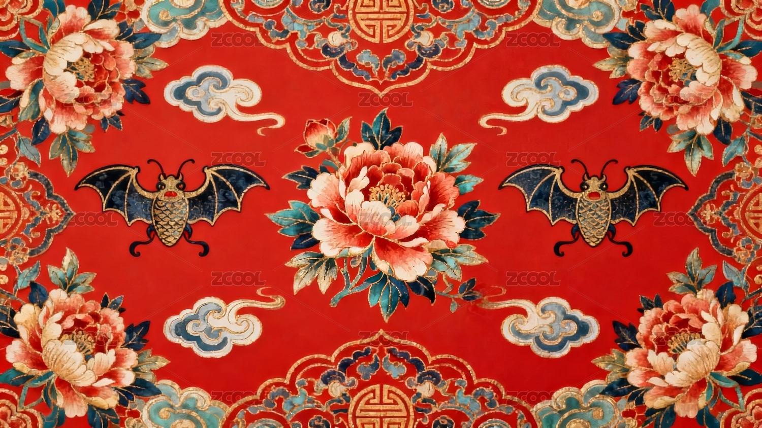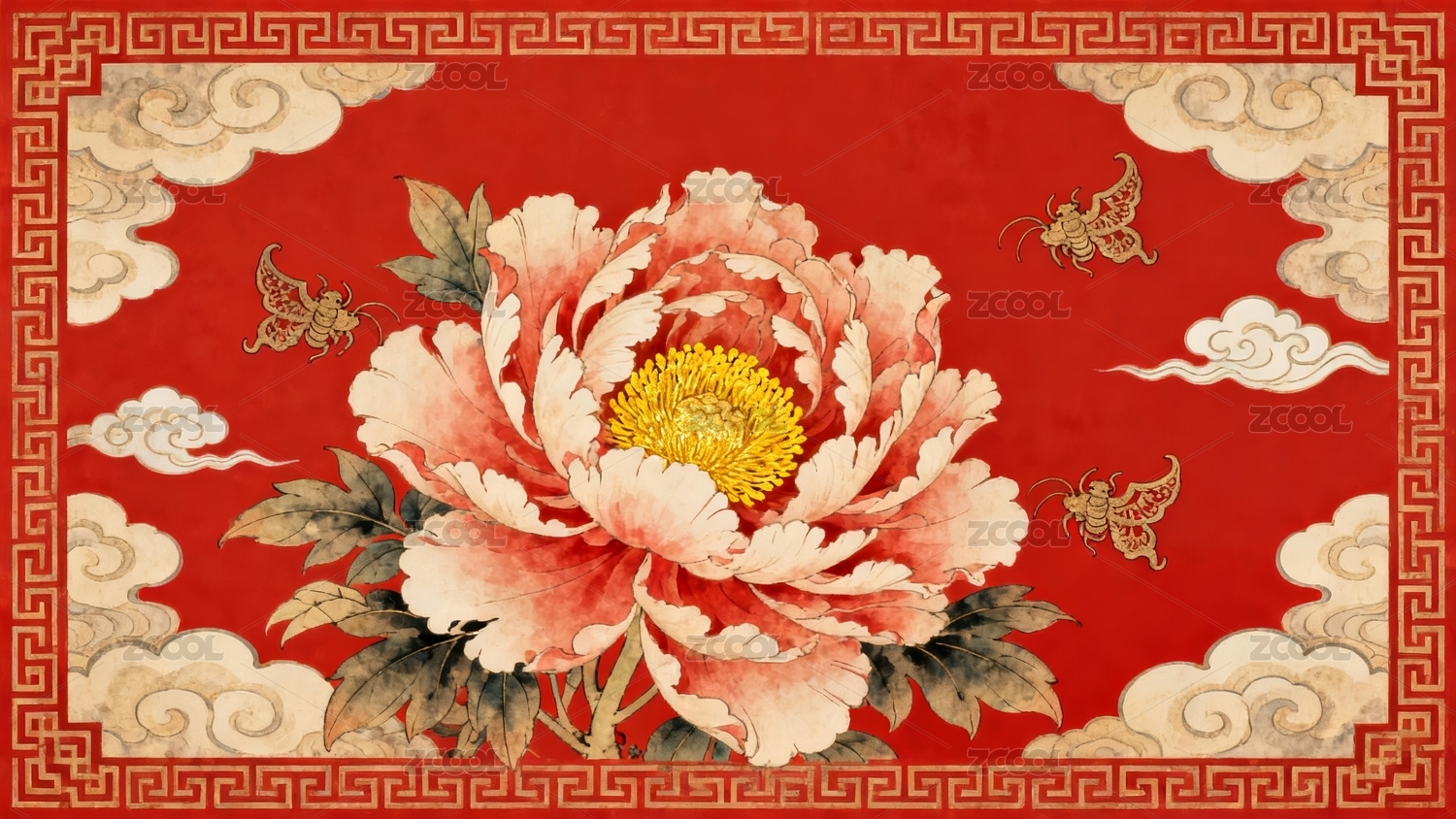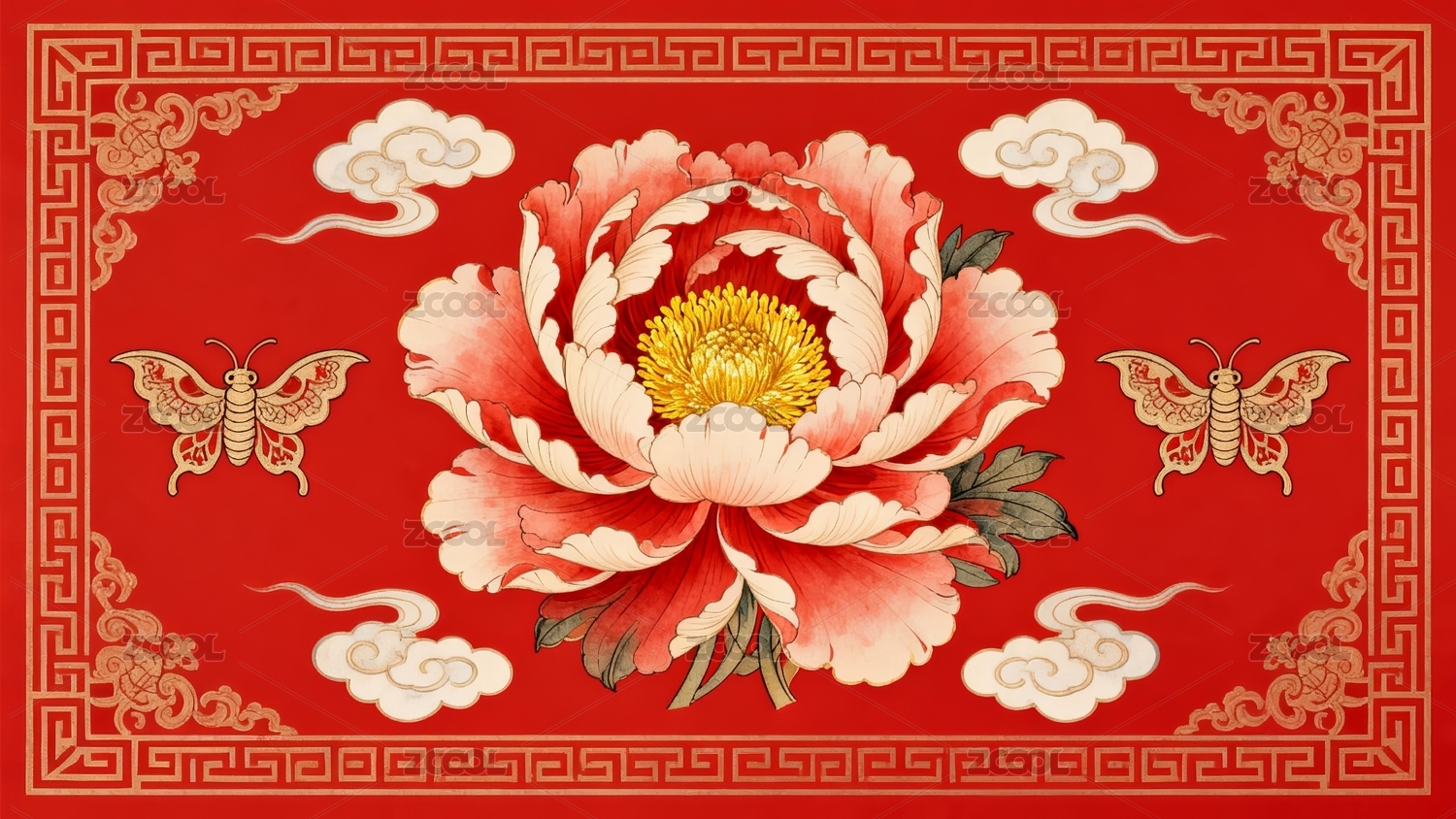 主视觉,商业,壁纸,传统,纹样,喜庆,装饰,场景,红色,牡丹