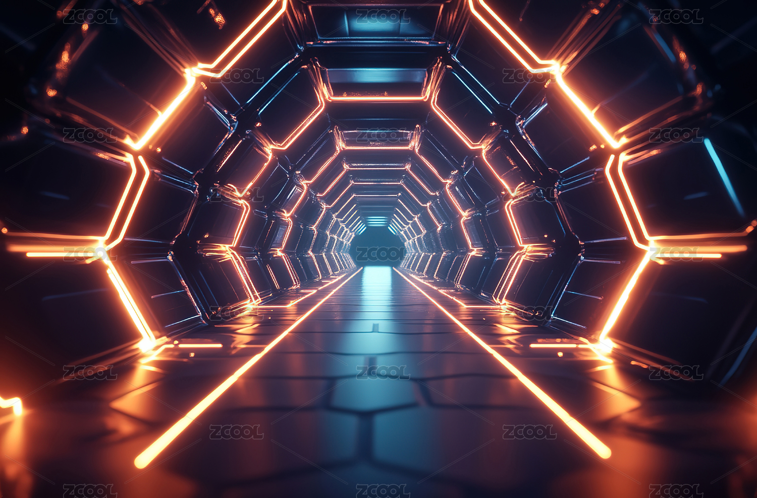 未来感霓虹六边形隧道