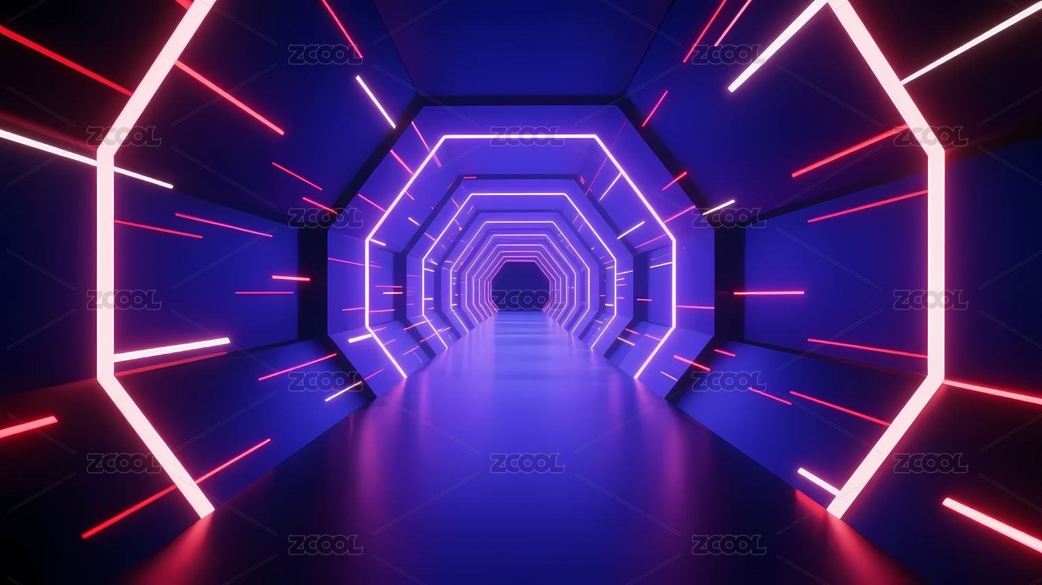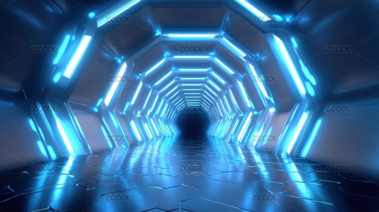 未来感六边形霓虹隧道