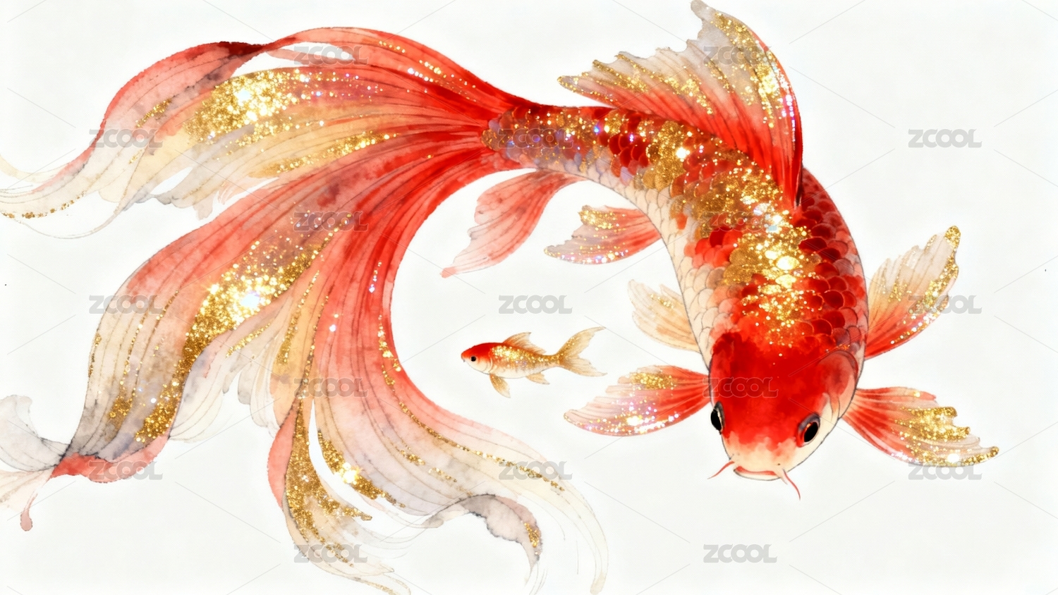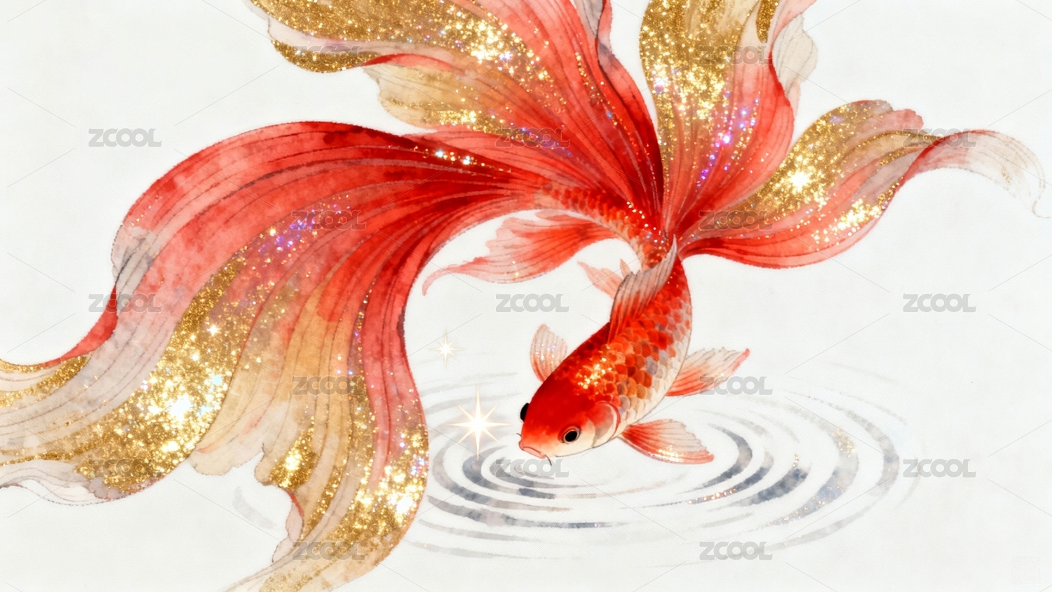 主视觉,商业,壁纸,金鱼,金粉,吉祥,寓意,水墨,装饰,国风