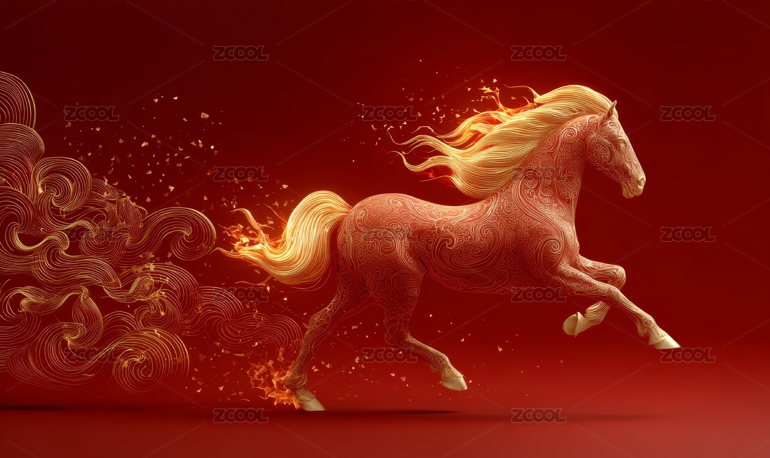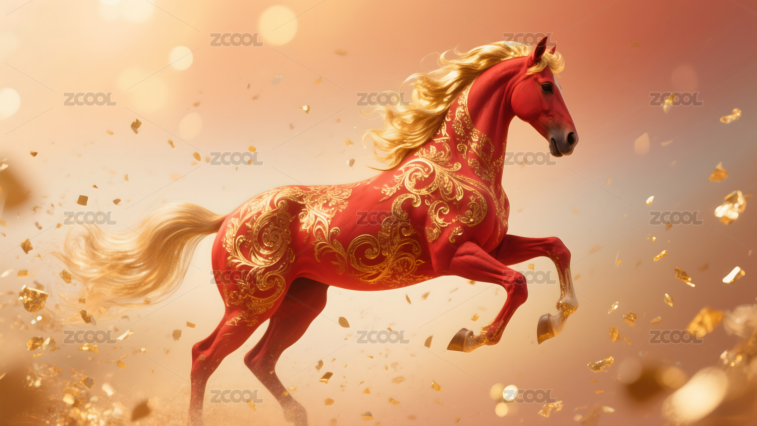 主视觉,商业,壁纸,骏马,炫彩,艺术,展示,红色,花纹,生肖