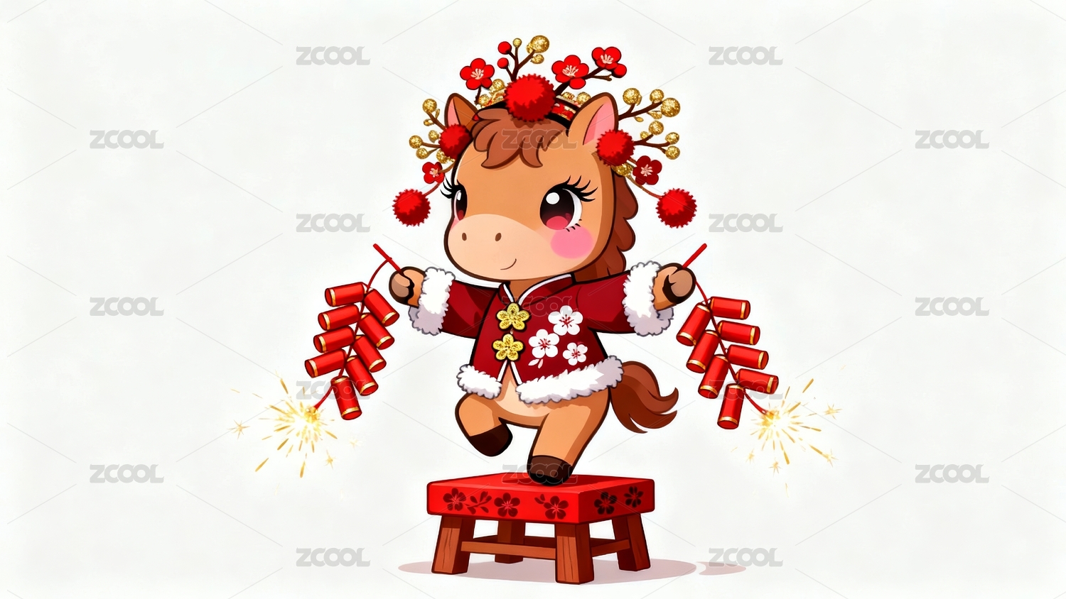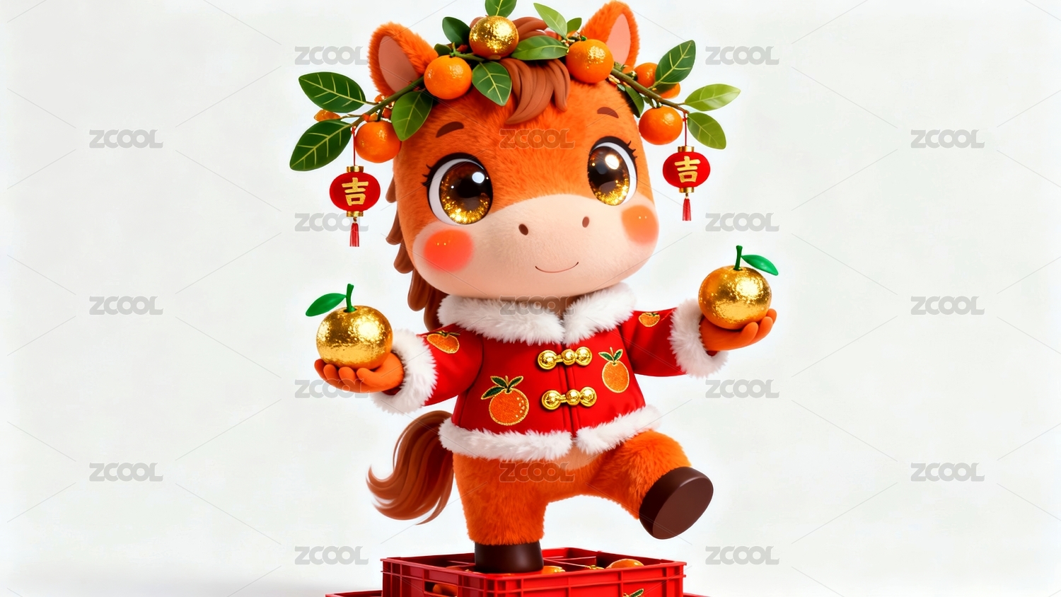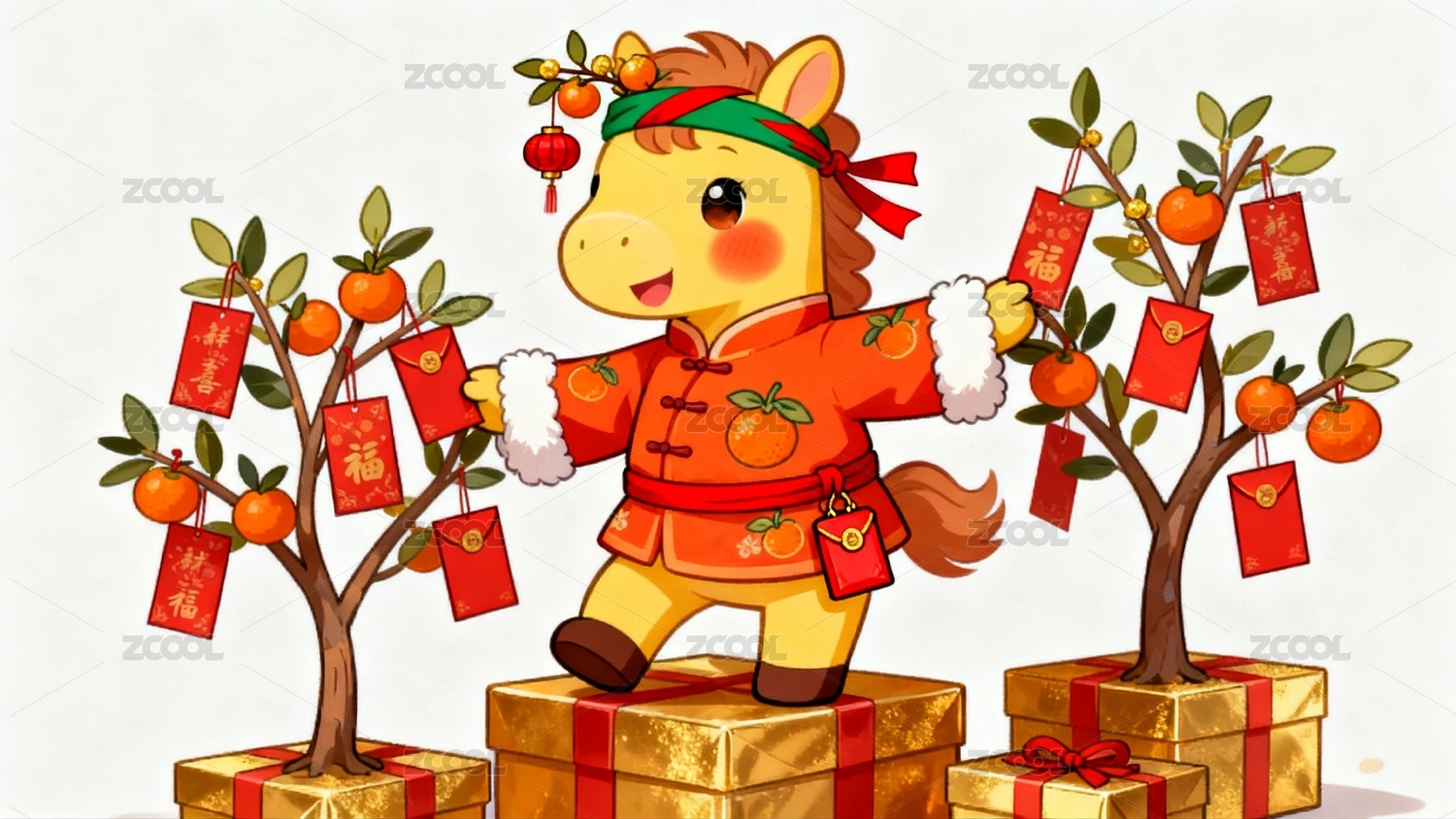主视觉,商业,壁纸,卡通,小马,喜庆,春节,新春,灯笼,金元宝