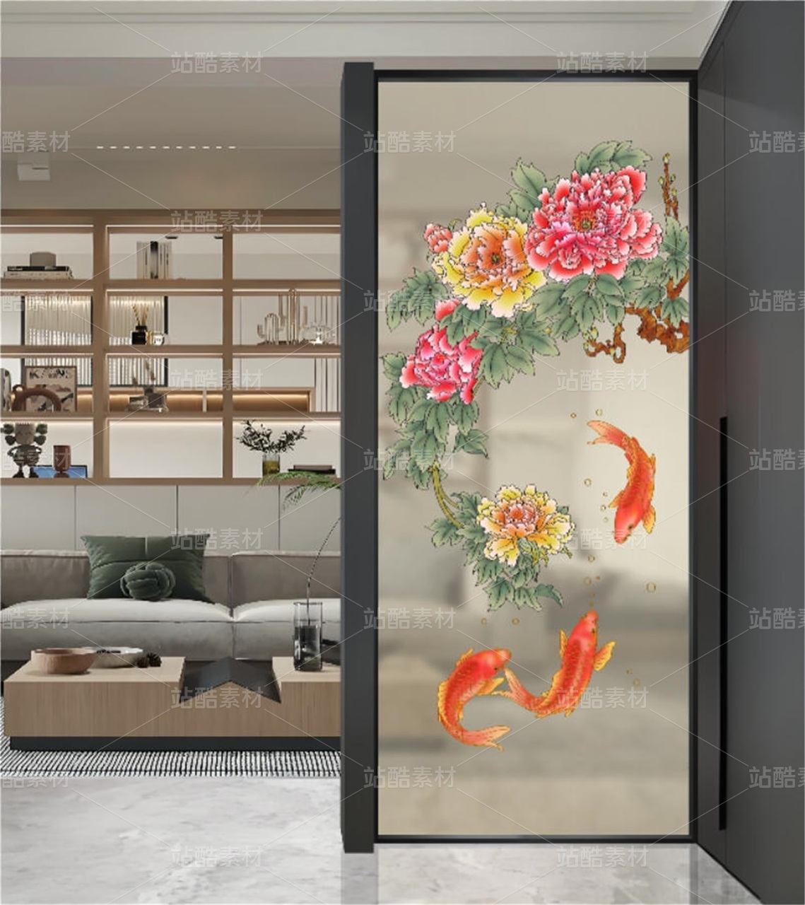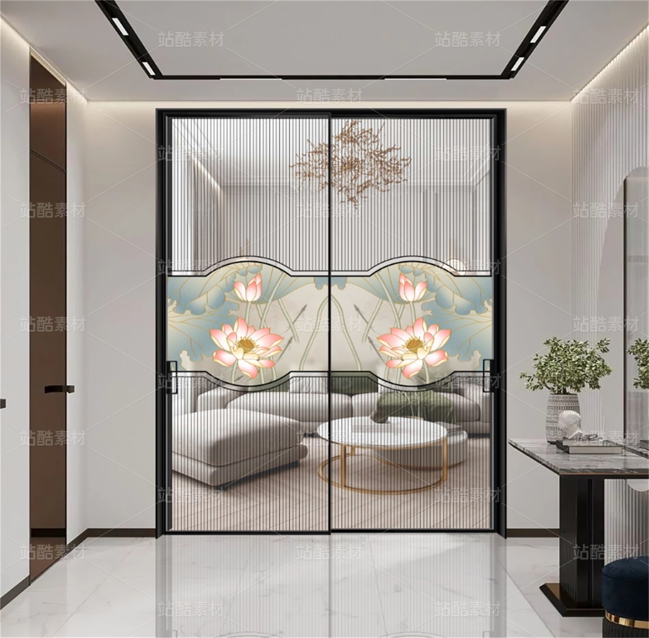 意境植物图案 手绘移门图案 抽象创意花纹 适用于家装,酒店,文化场所等,用于做:背景墙、隔断、移门,屏风、玄关。高清分层图可以用UV打印。