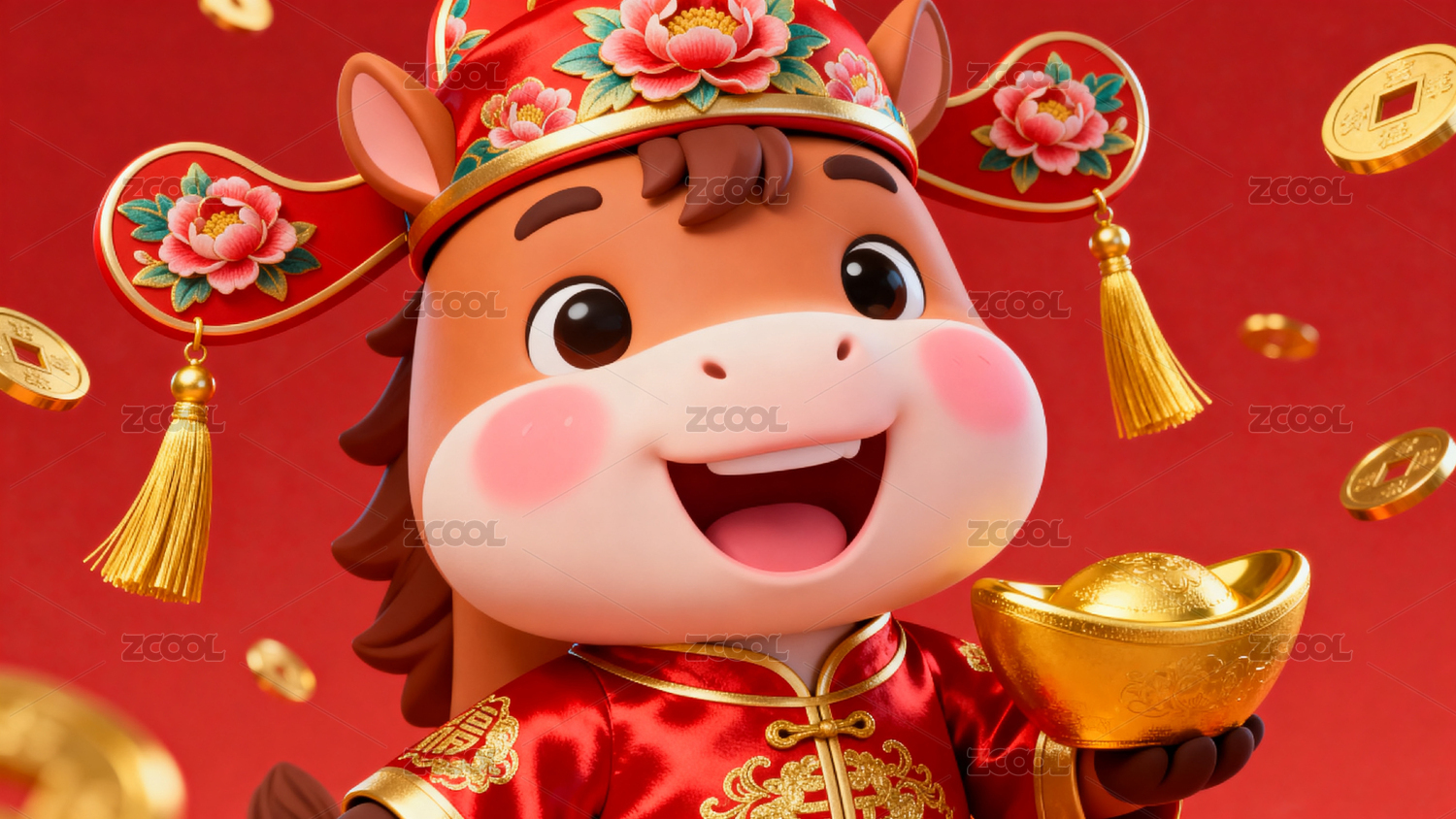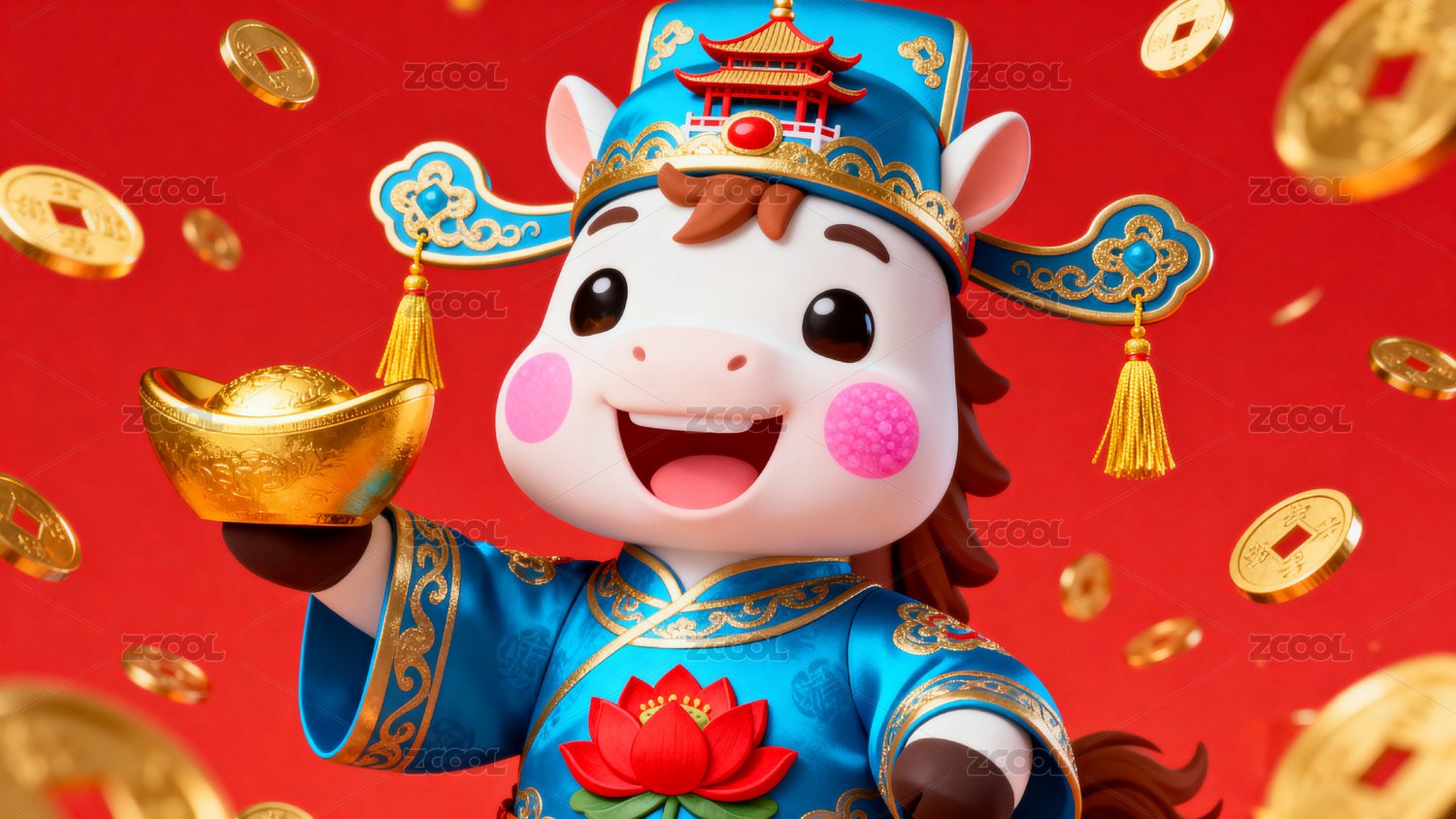 穿红袍戴官帽的卡通马手持金元宝