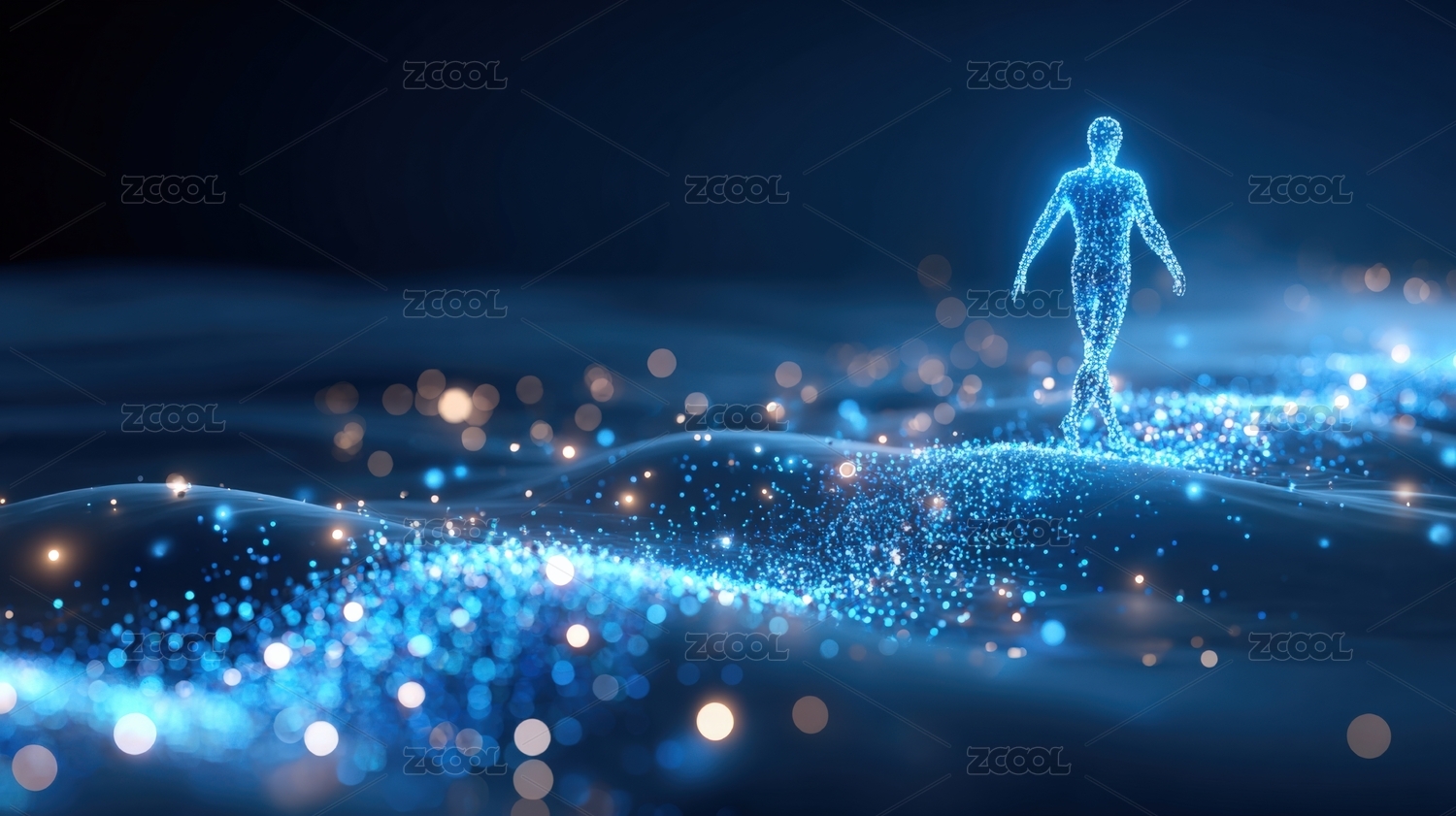 未来人工智能蓝色3D粒子智慧仿生人概念