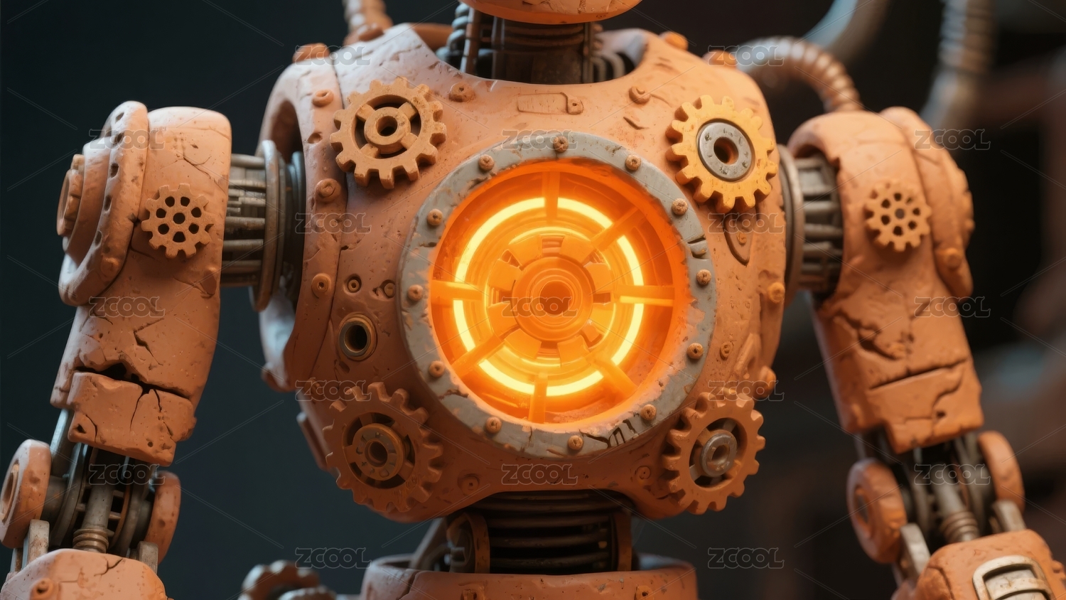 机械风格机器人胸部特写发光核心齿轮装饰