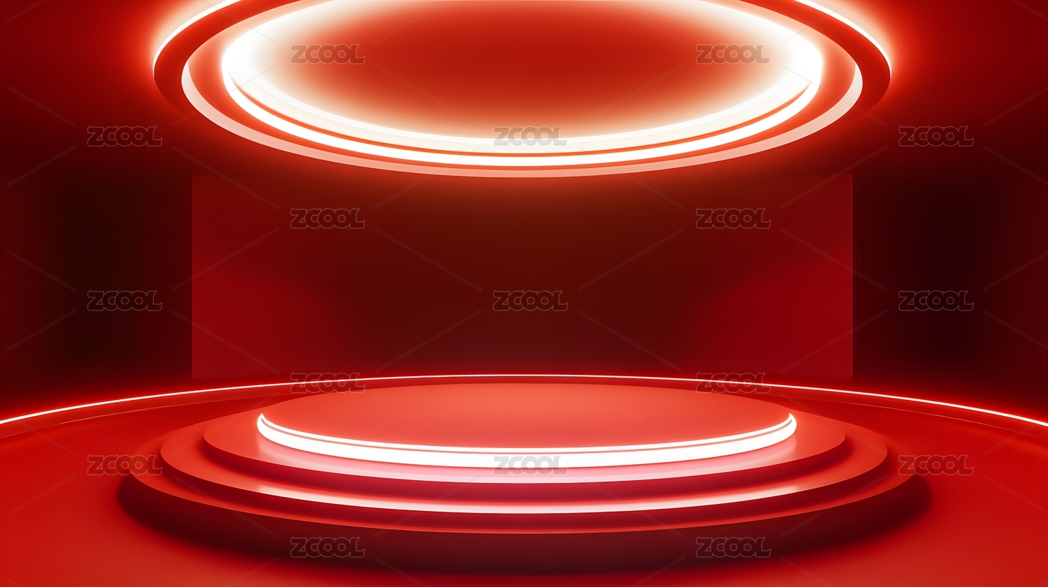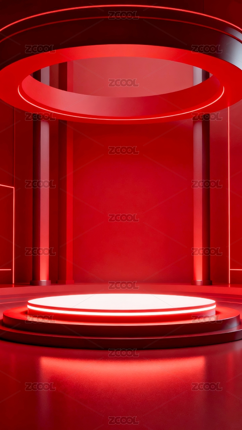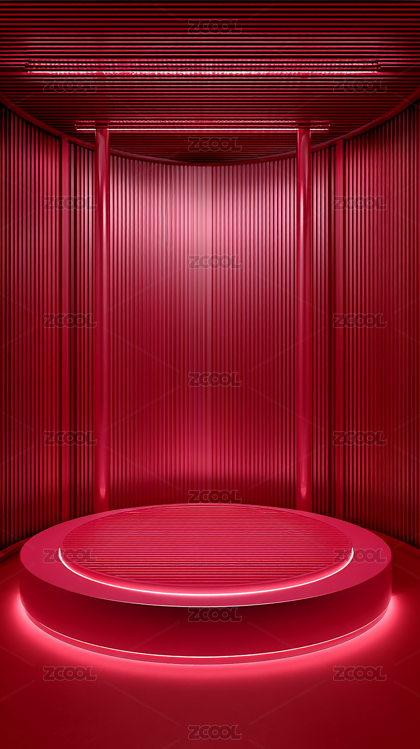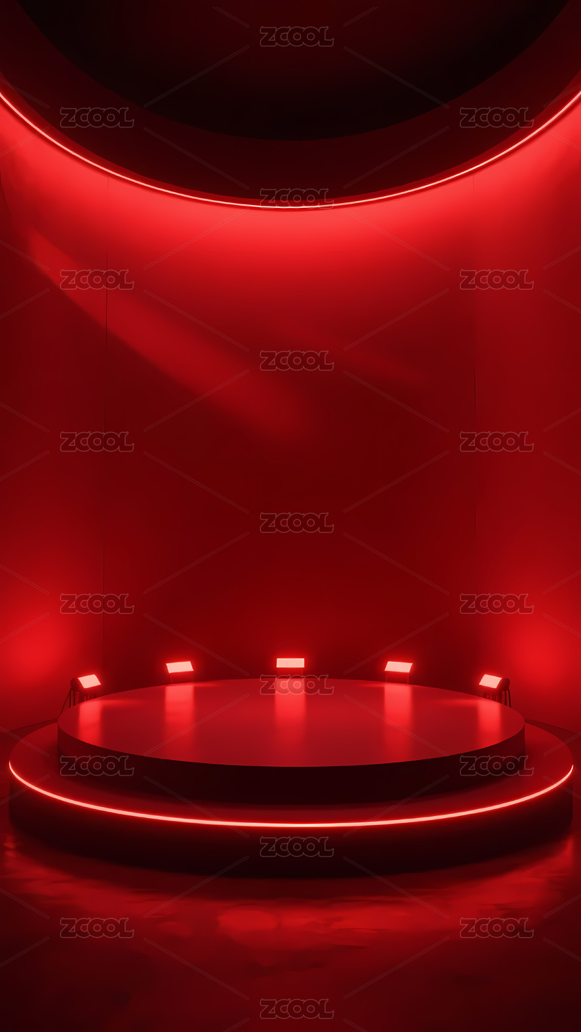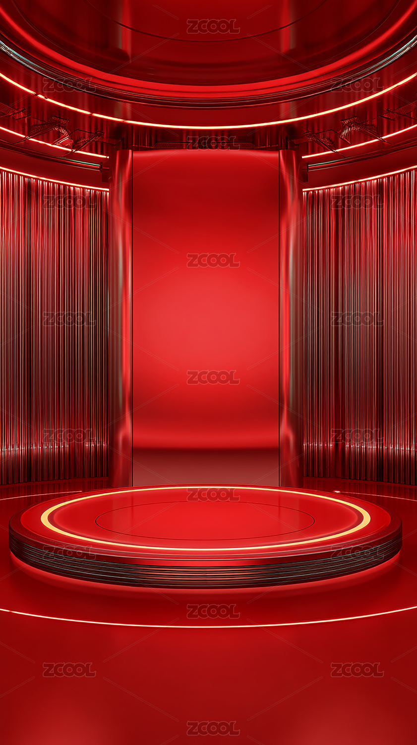 红色光效圆形展台科技场景