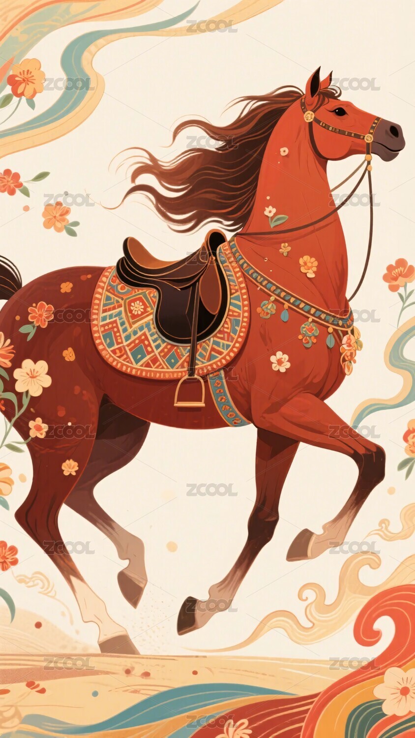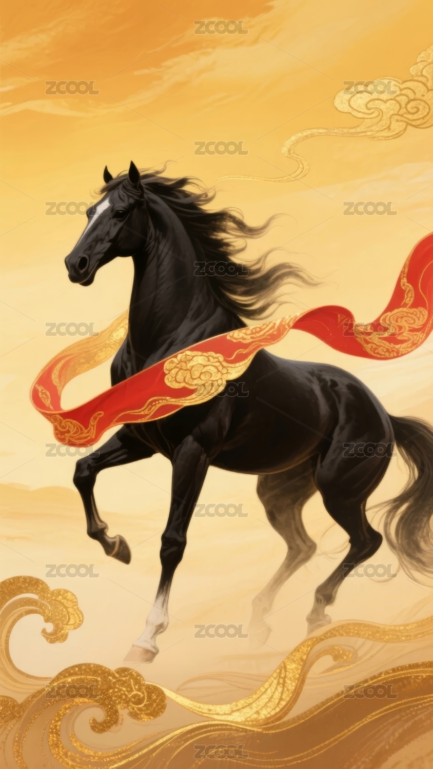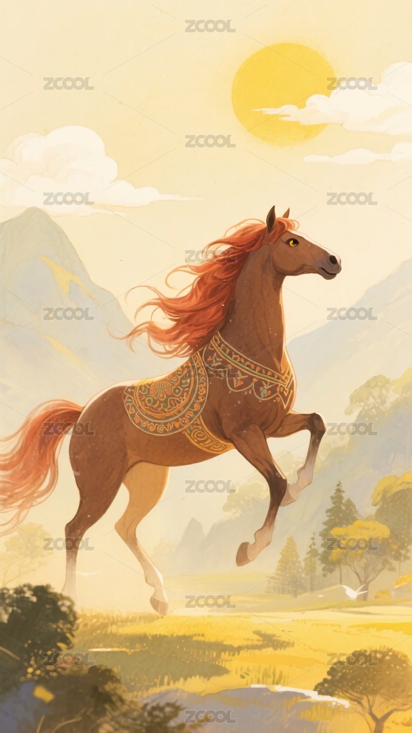 花纹,古建筑,太阳,飞鸟,天空,风景,绘画,建筑,云朵,山峰