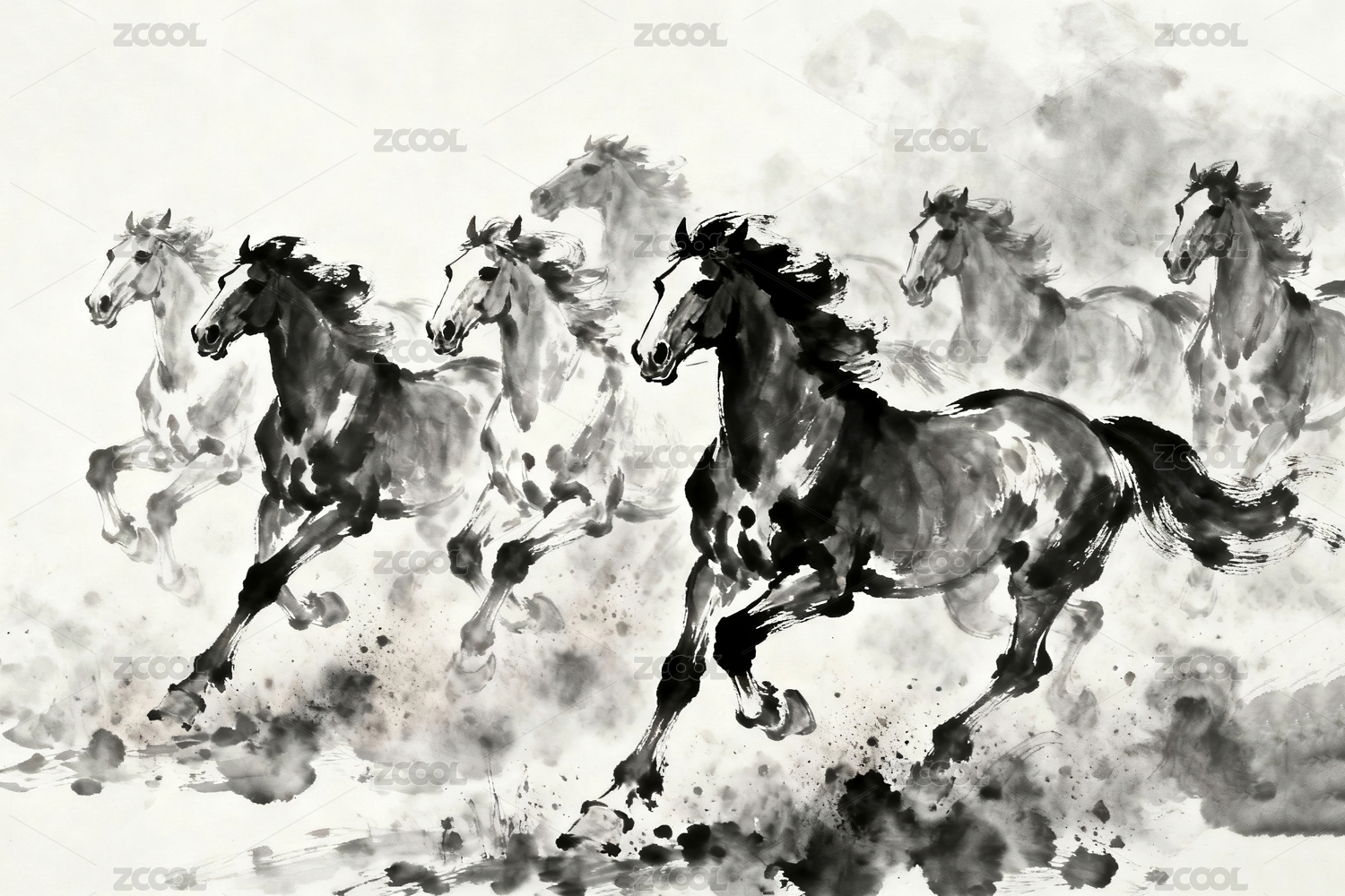 水墨风格奔腾骏马图