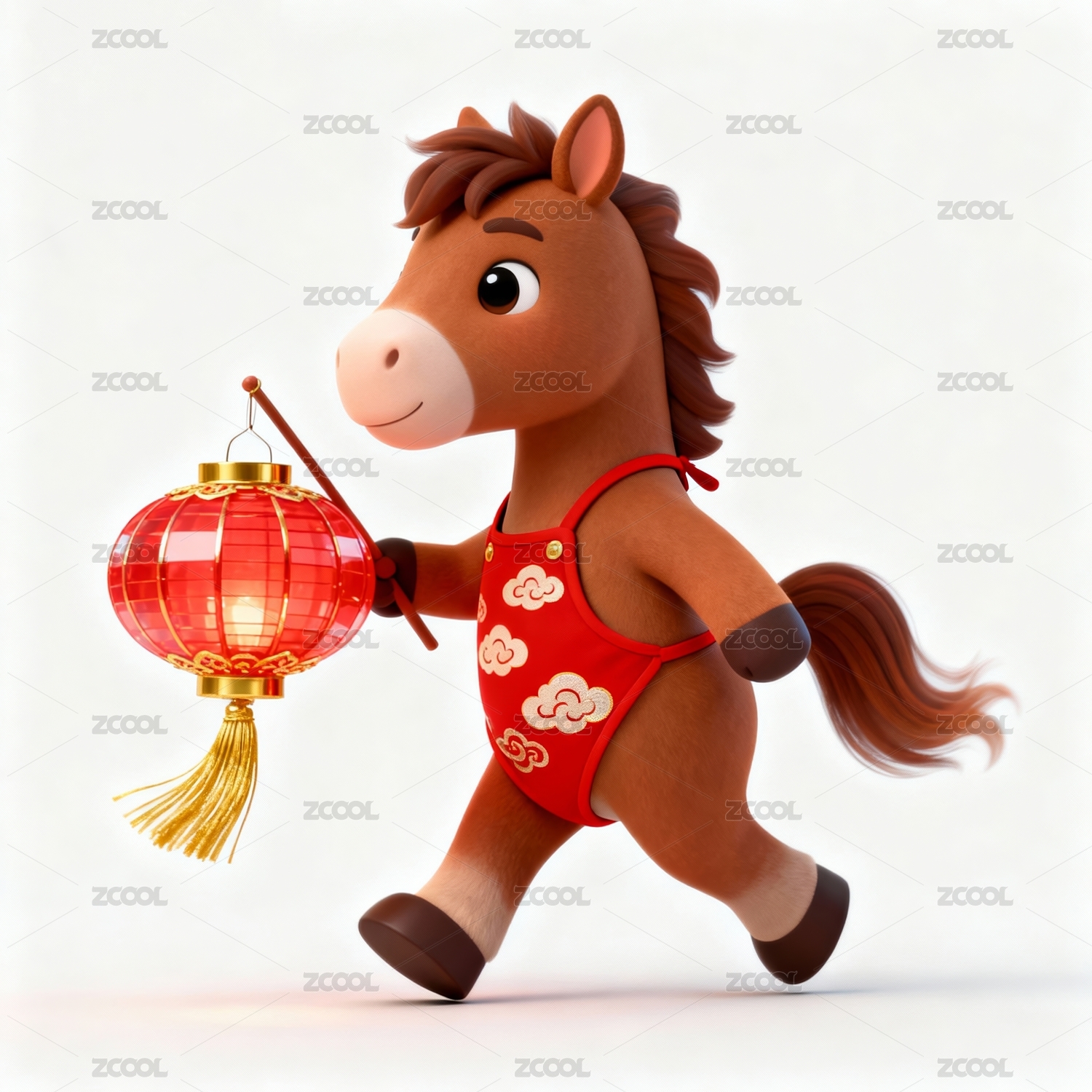 3D版拿着灯笼的小马