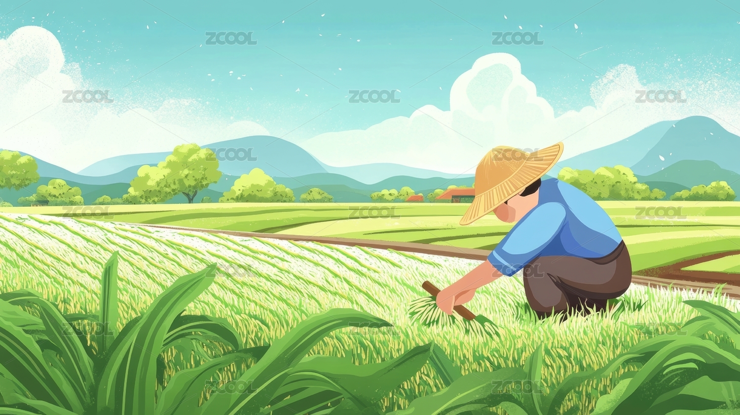 笑容,农民,田野,风车,绿色,衣服,帽子,双手,奔跑,农田
