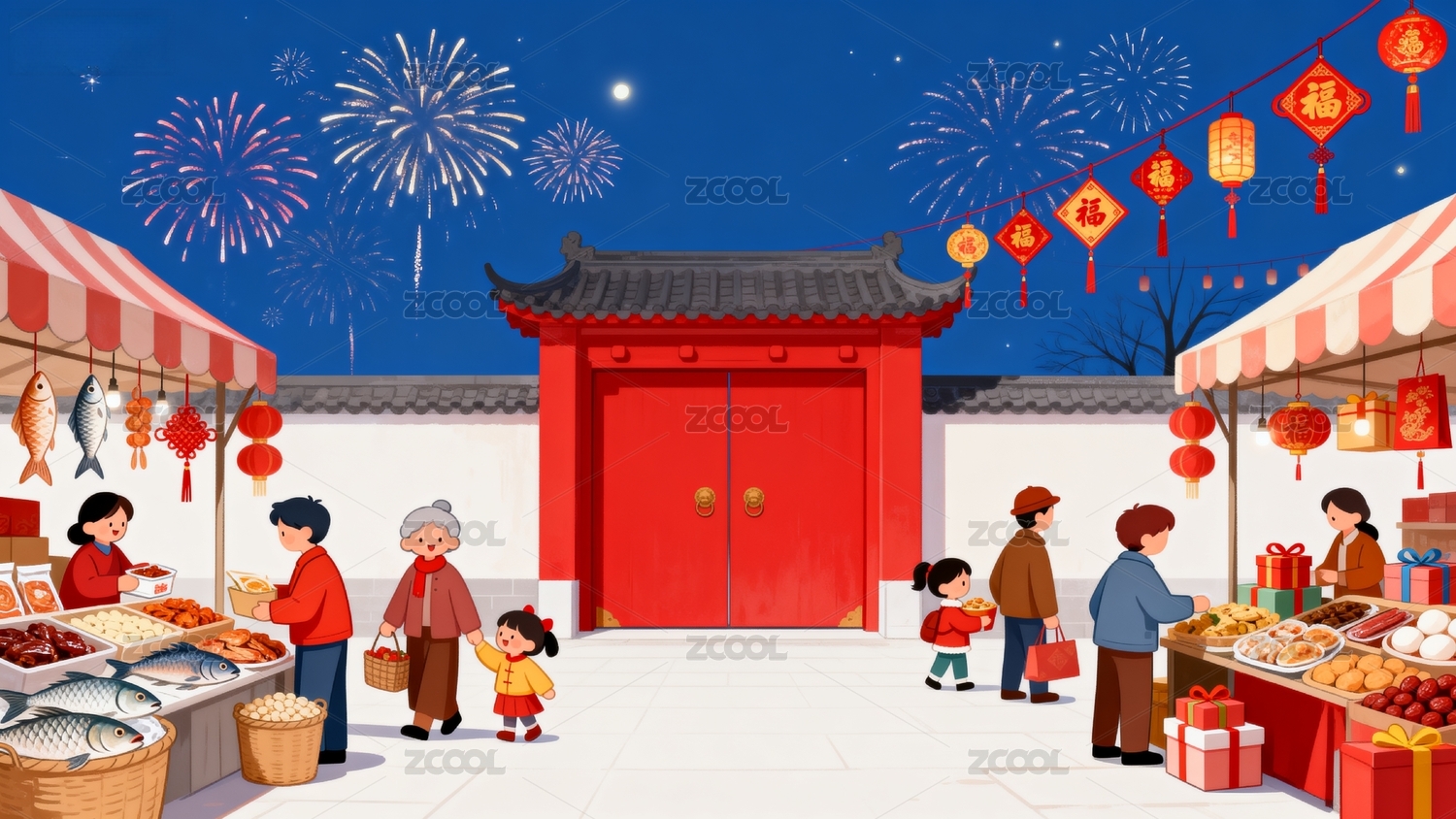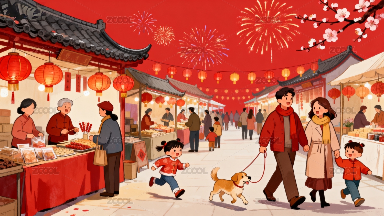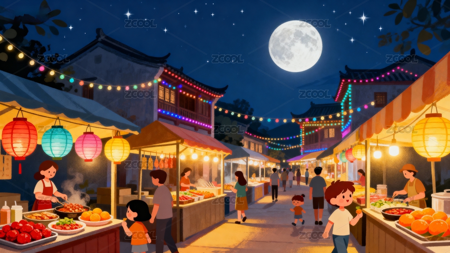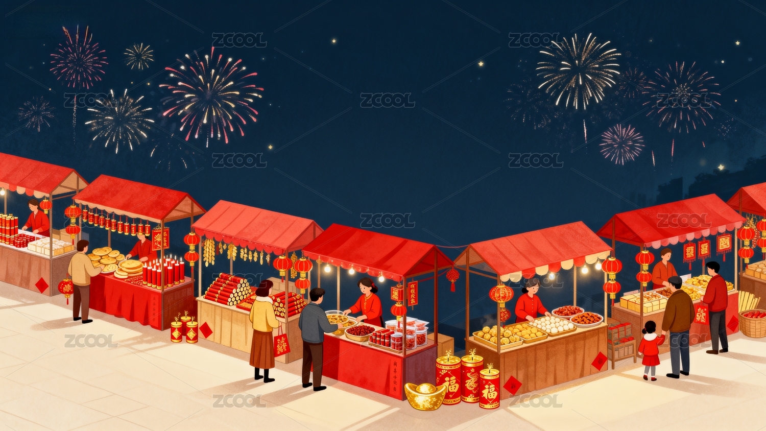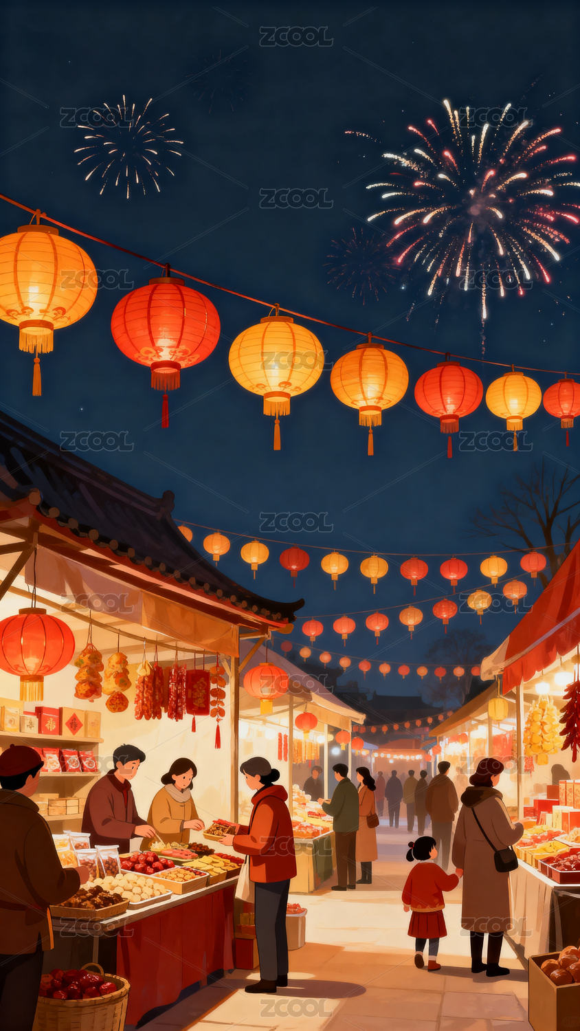 装饰,灯光,儿童,节日,热闹,色彩,食物,烟花,成人,摊位