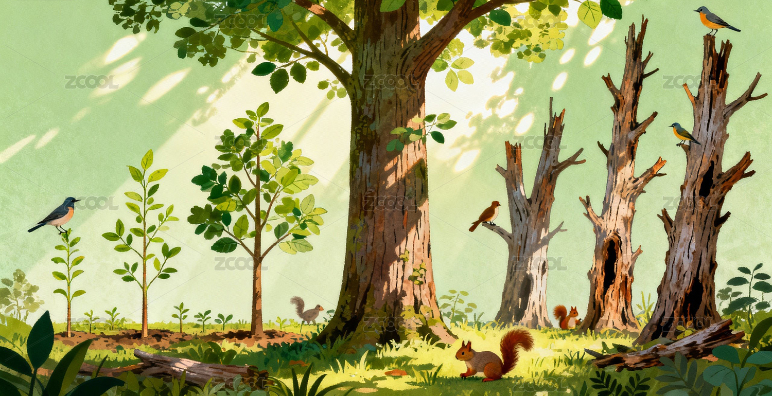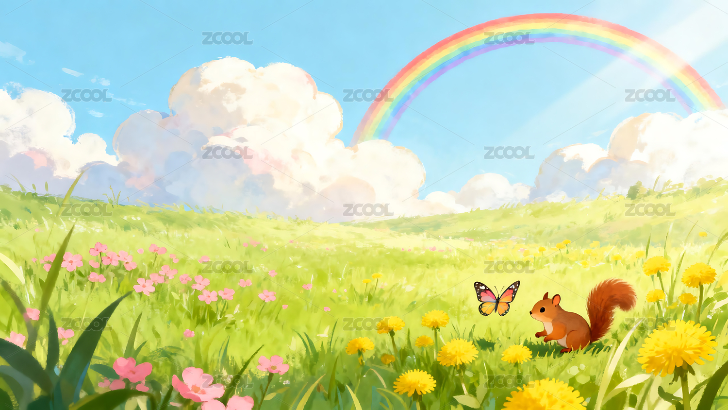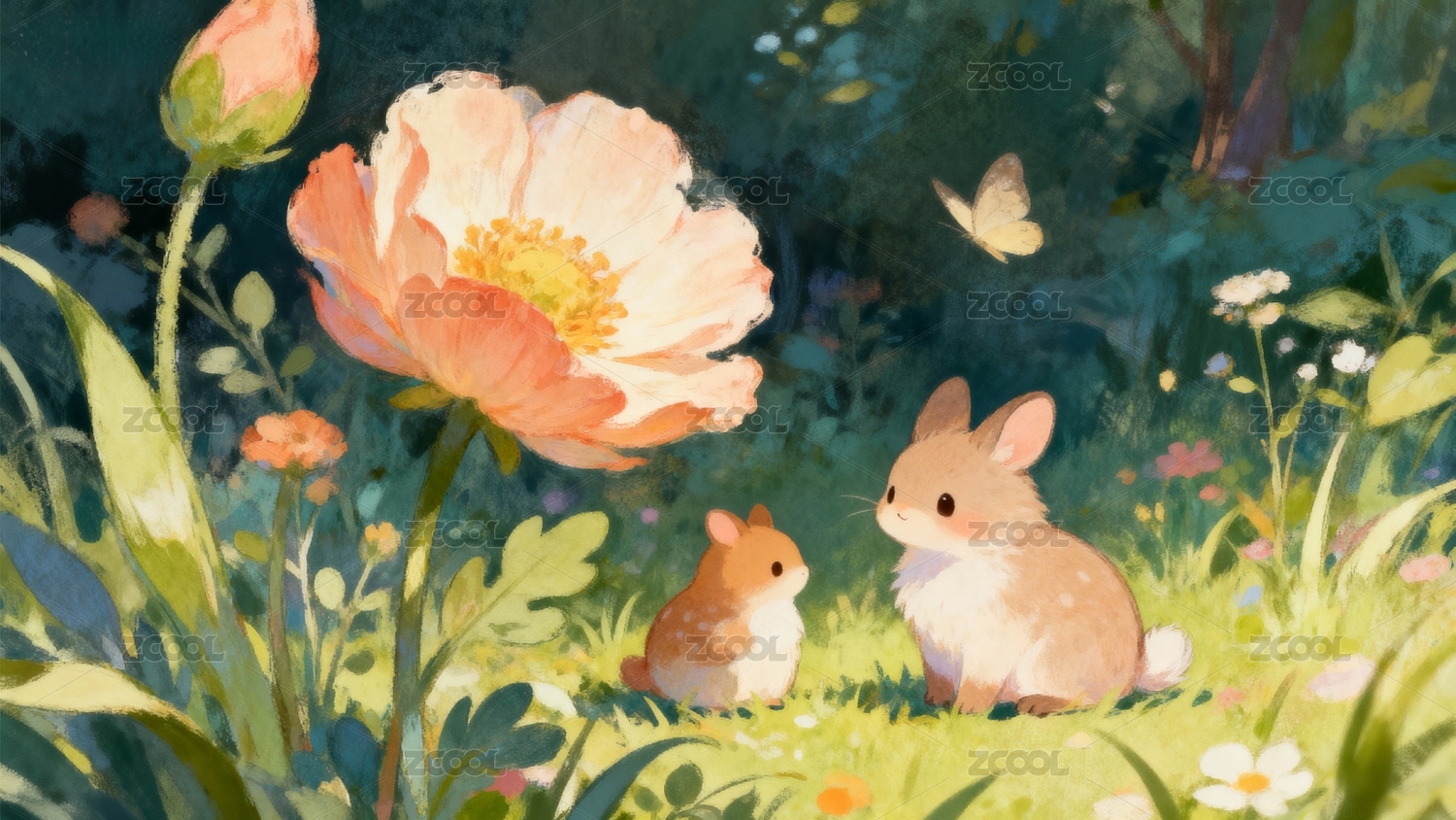 自然,花朵,绿叶,阳光,森林,草地,生机,树干,尾巴,耳朵