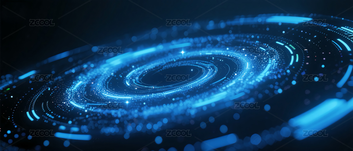 蓝色光环环绕星云科技感