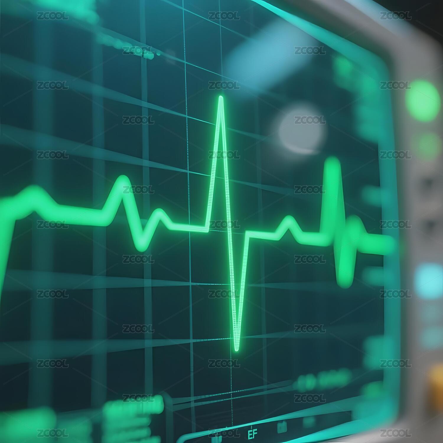 绿色屏幕上截断的心脏图曲线 三维渲染
