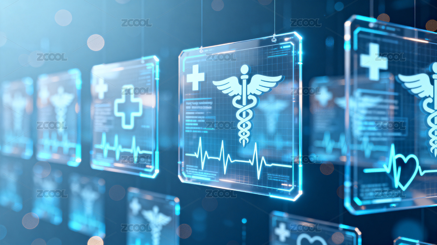 蓝色,线条,光效,科技,屏幕,图标,符号,心电图,医疗,显示屏