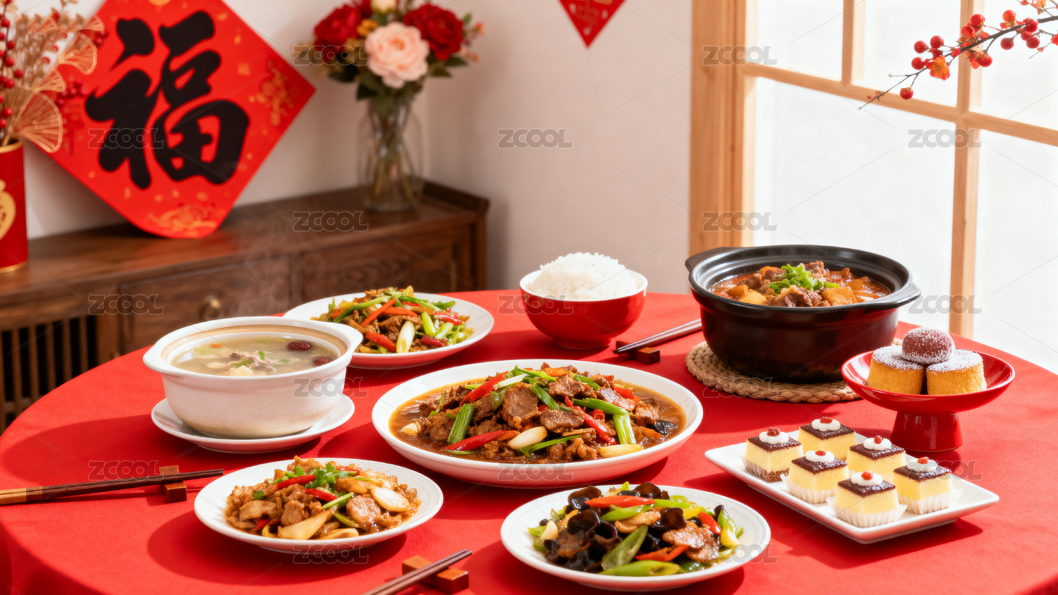 丰盛的年夜饭家庭聚餐团圆聚会节日春节