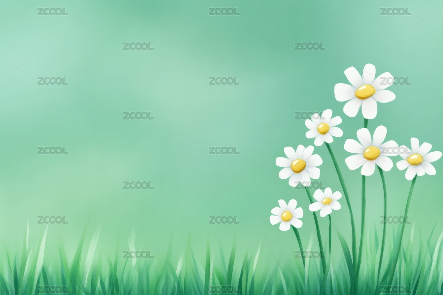 绿色背景上的雏菊花