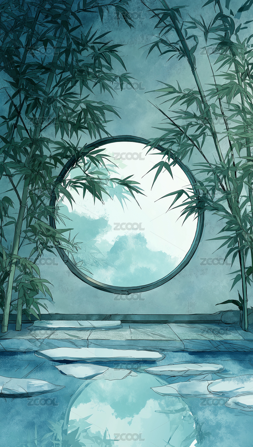产品展台,自然,插画,背景,清新,展览,竹林,绿色,竹子,宁静