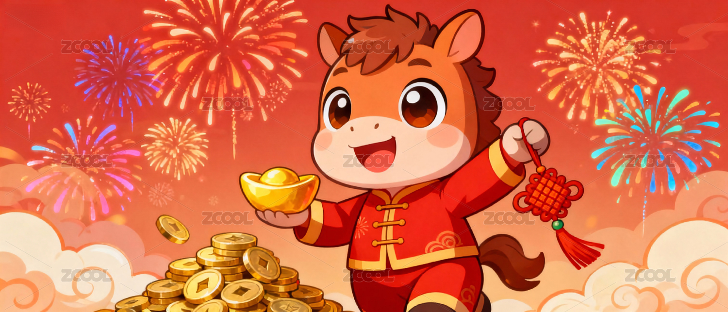 主视觉,商业,壁纸,高端,萌马,新年,红包,唐装,卡通,可爱