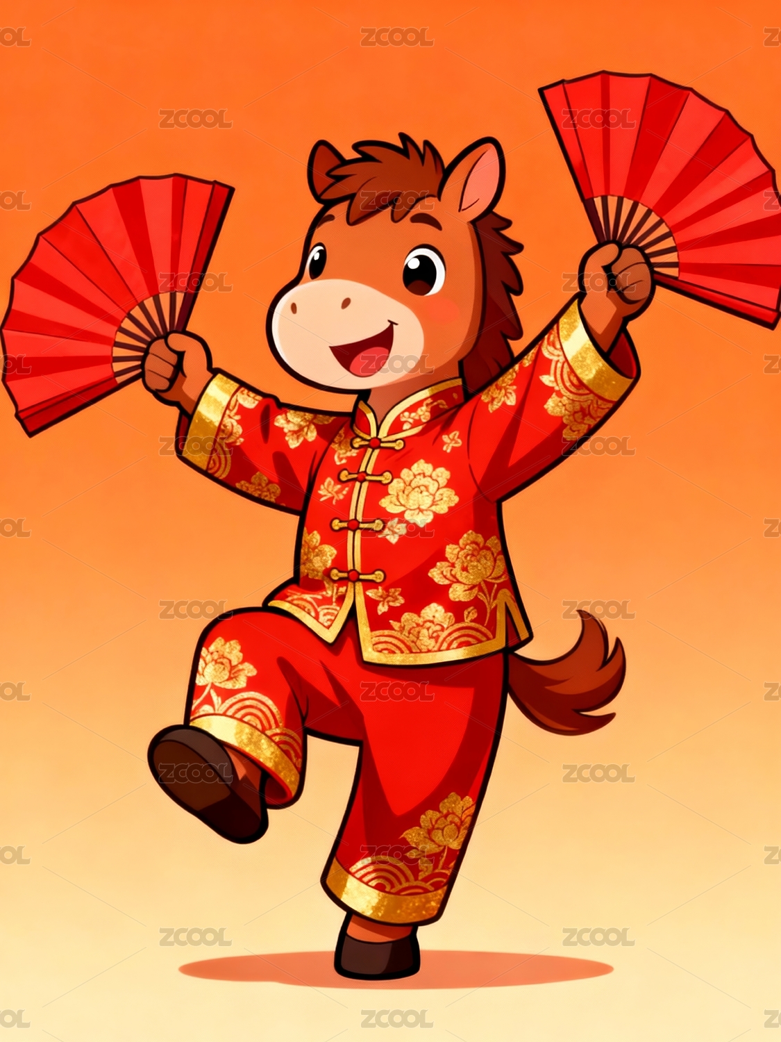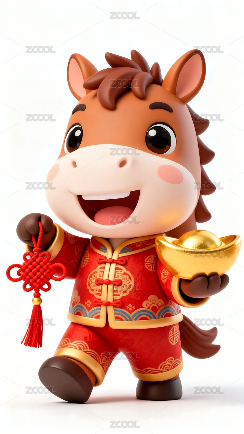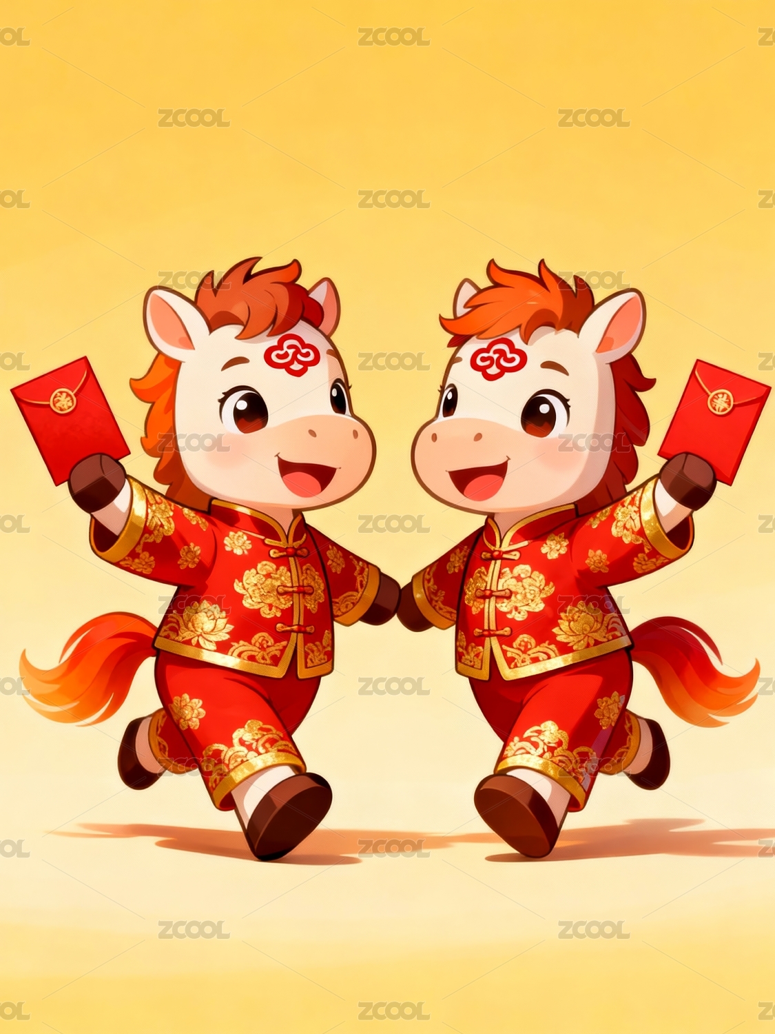 主视觉,商业,壁纸,高端,萌马,新年,红包,唐装,卡通,可爱