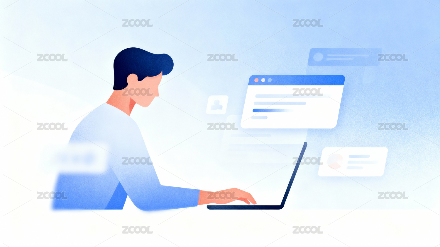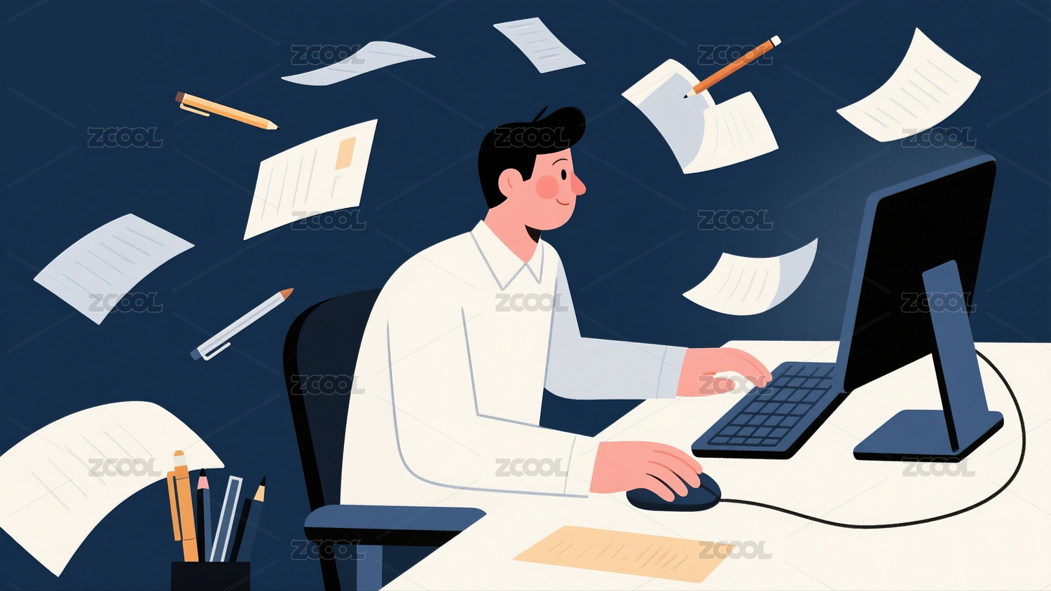 插画,人物,橙色,背景,设计,男性,坐姿,操作,电脑,笔记本