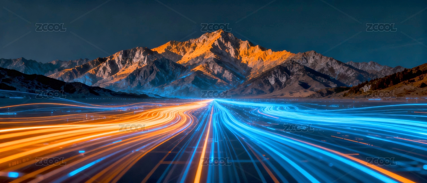 深蓝高速公路与橙黄色山丘与星空