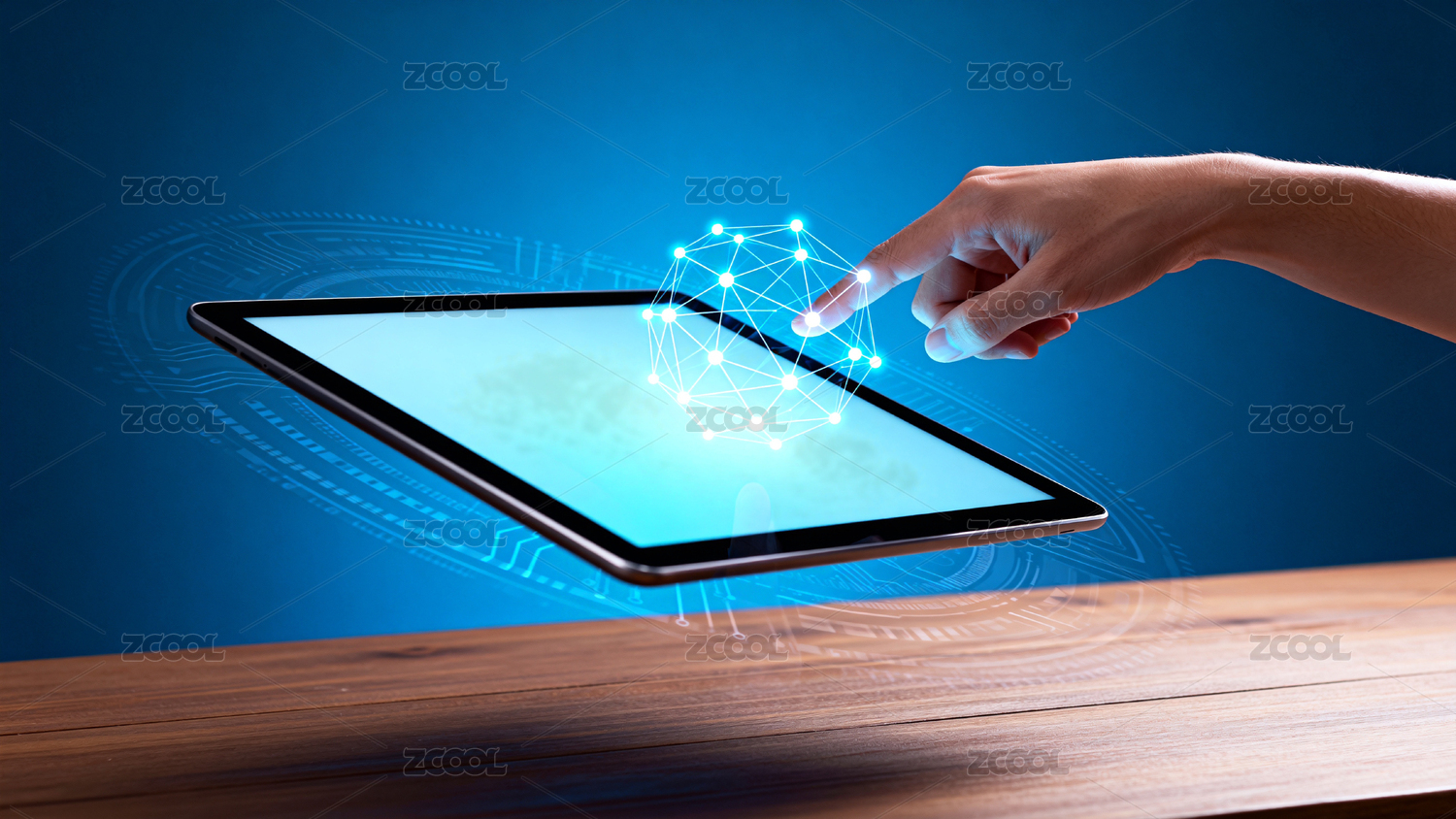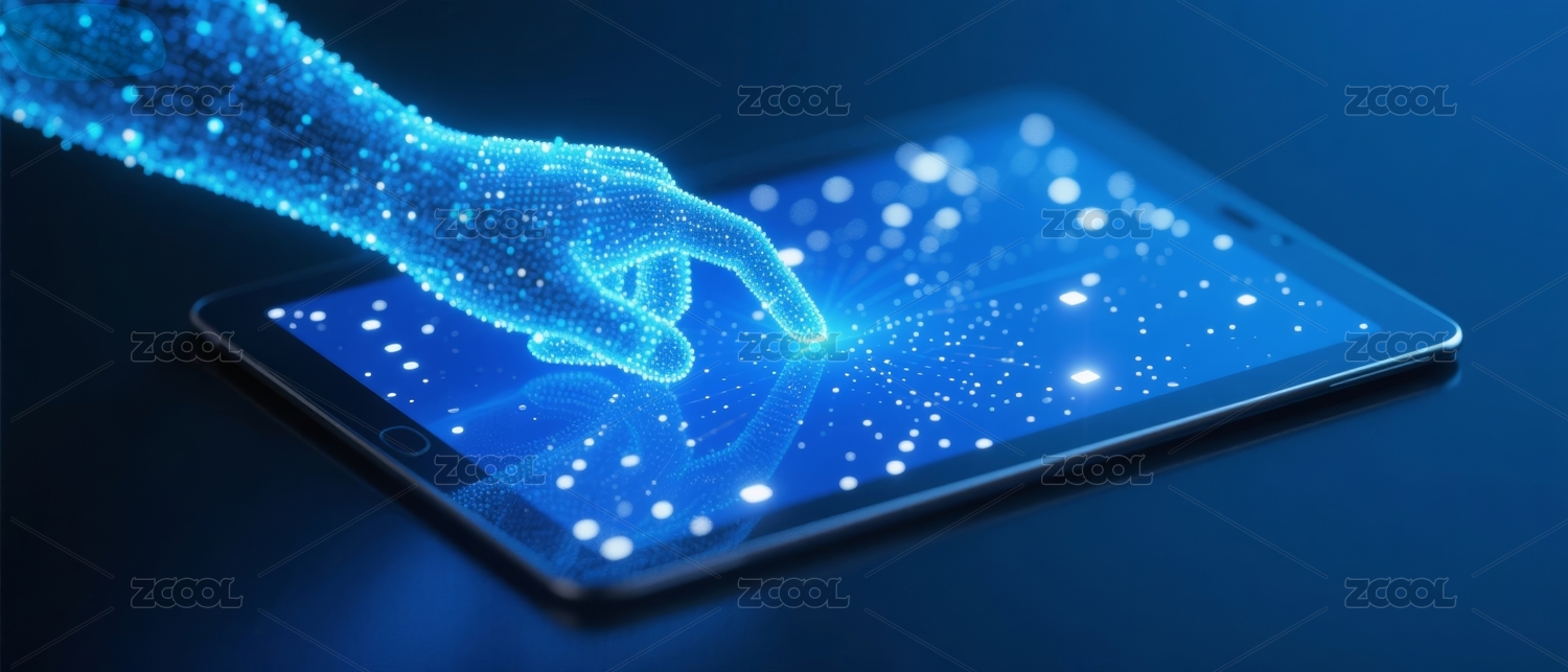 手指触碰发光科技平板屏幕