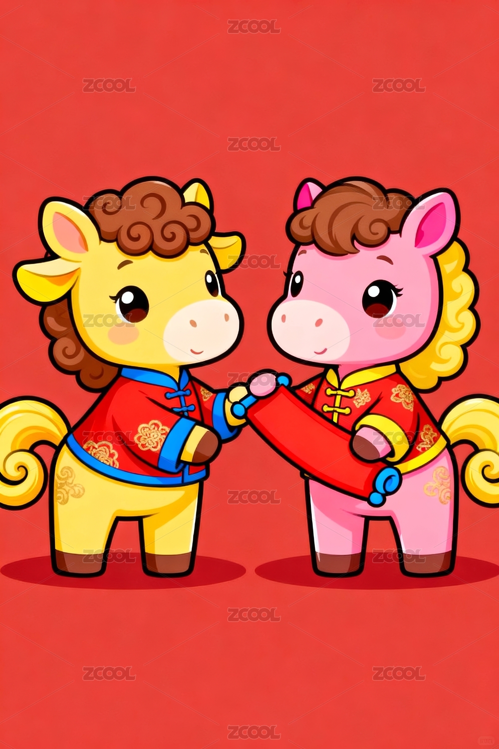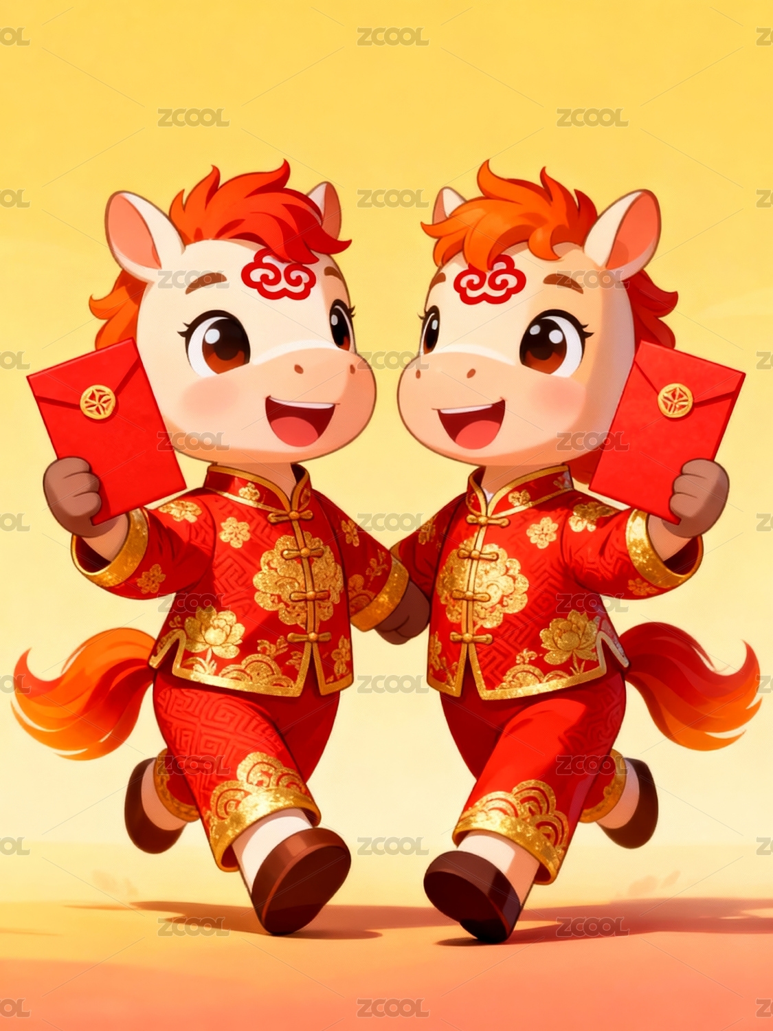 主视觉,商业,壁纸,萌马,新年,多场景,红包,礼盒,唐装,卡通