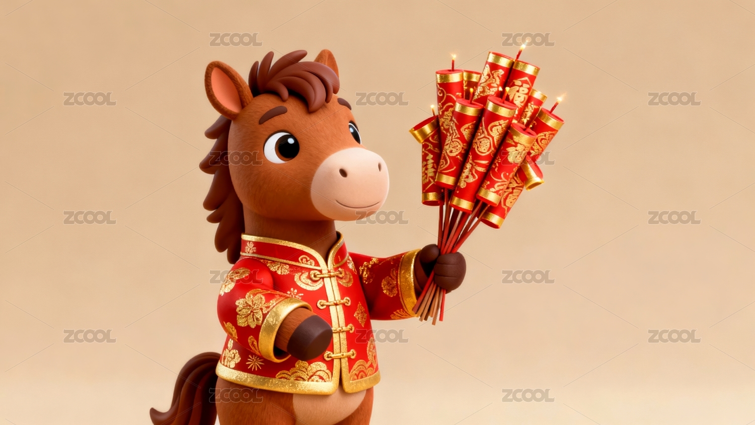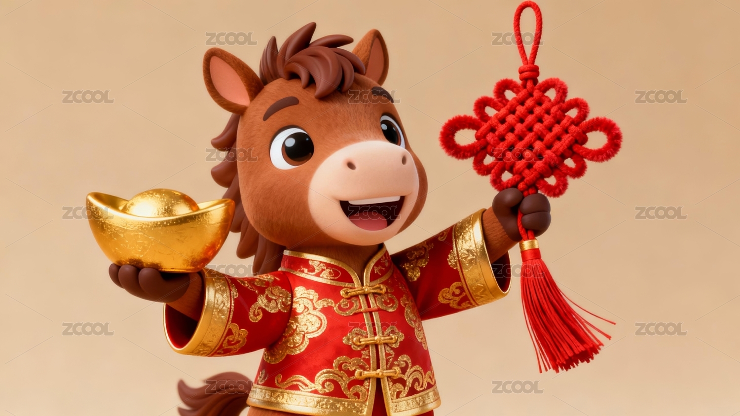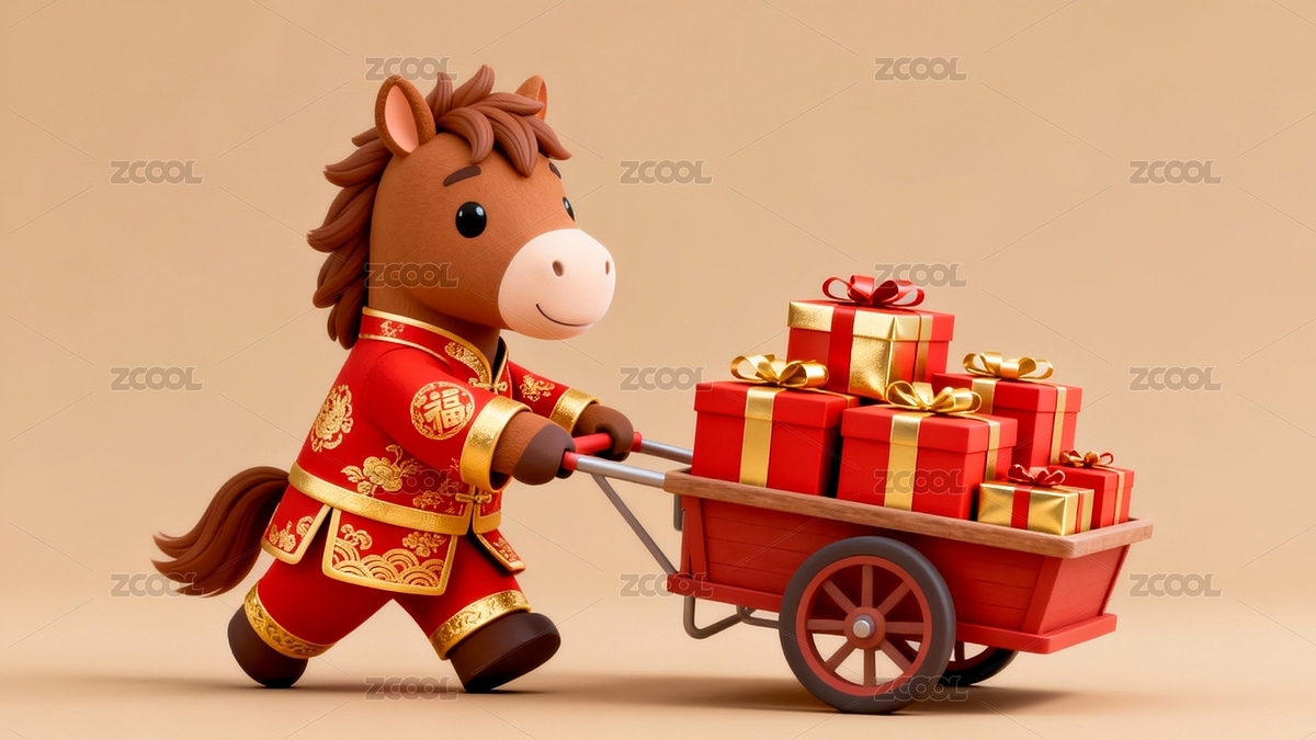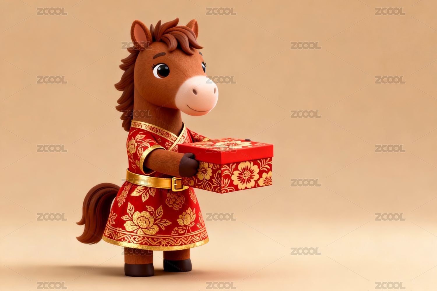 主视觉,商业,壁纸,萌马,新年,多场景,红包,礼盒,唐装,卡通