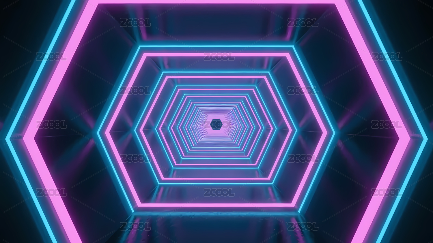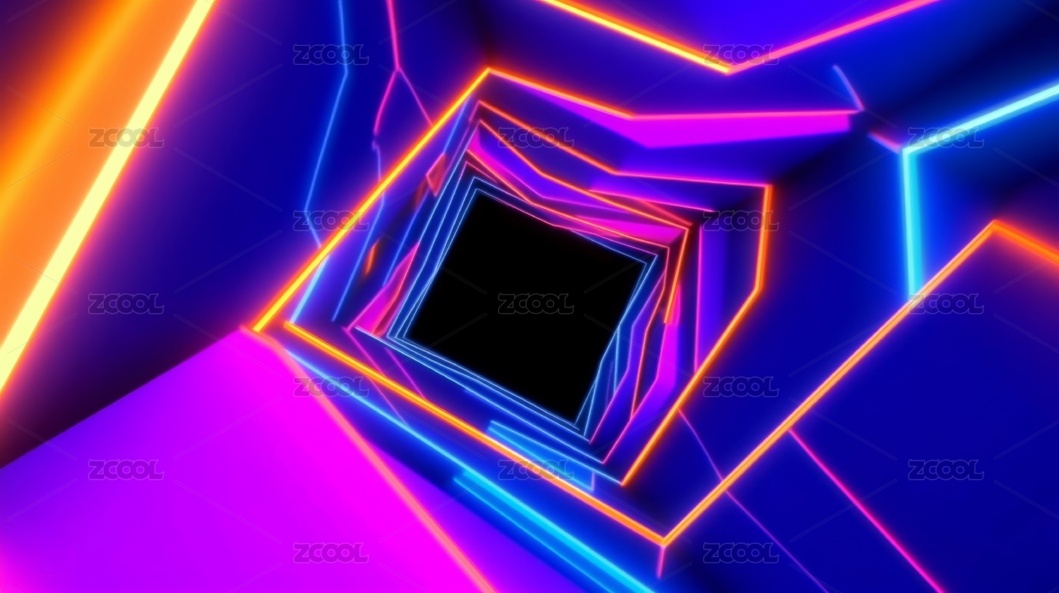 不同几何形状的五彩斑斓的舞台霓虹灯万花筒房间背景素材