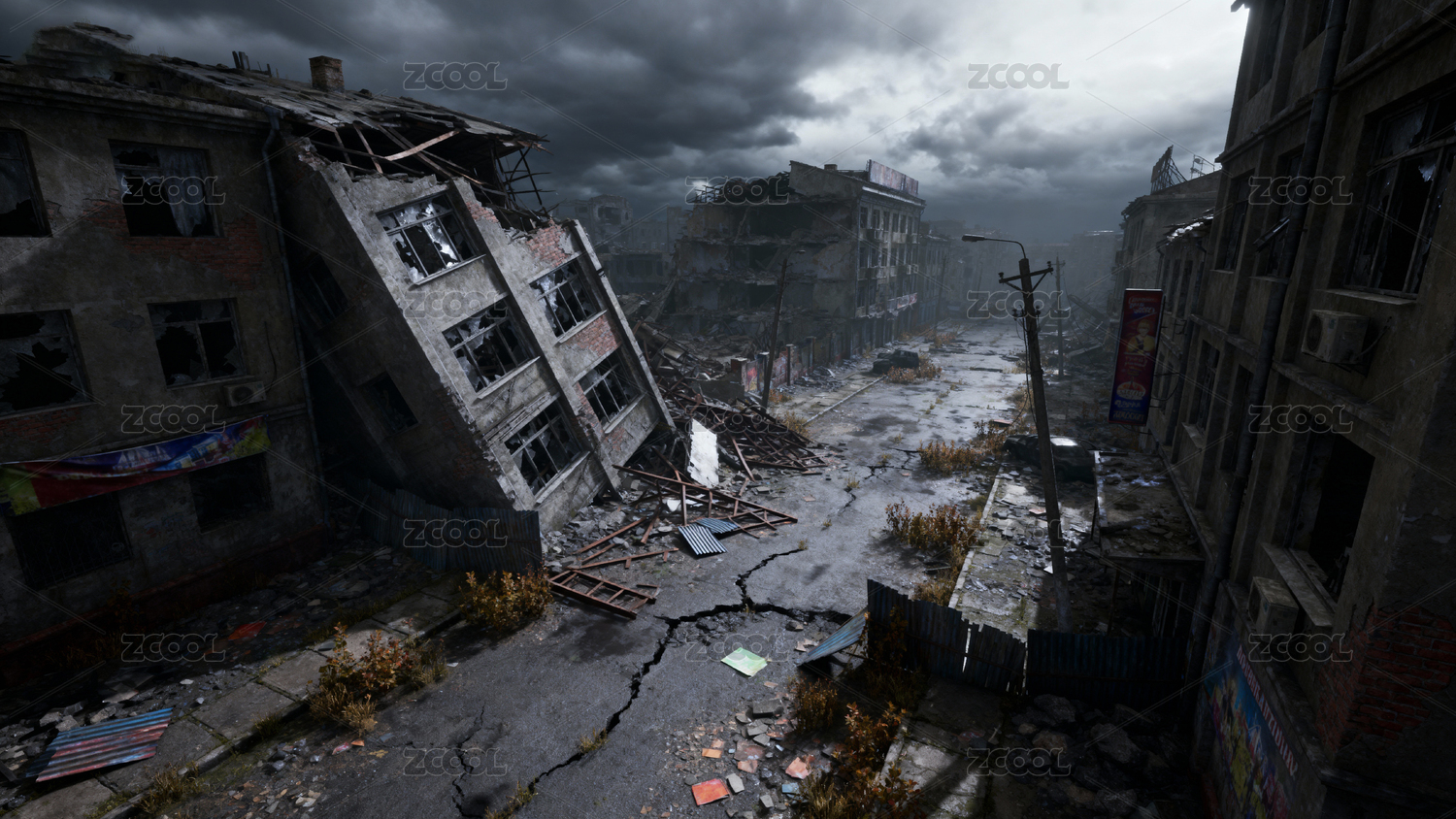 天空,房屋,玻璃,墙壁,地面,城市,屋顶,烟雾,车辆,废墟