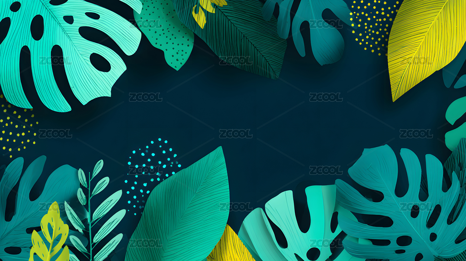 3D渲染风格的热带植物绿色背景