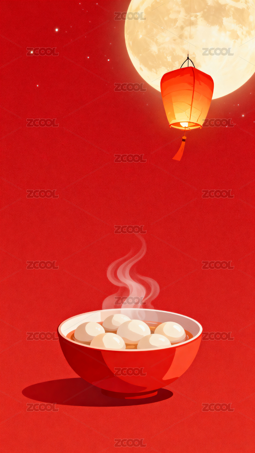 中华传统节日元宵节红灯笼和圆月矢量插画