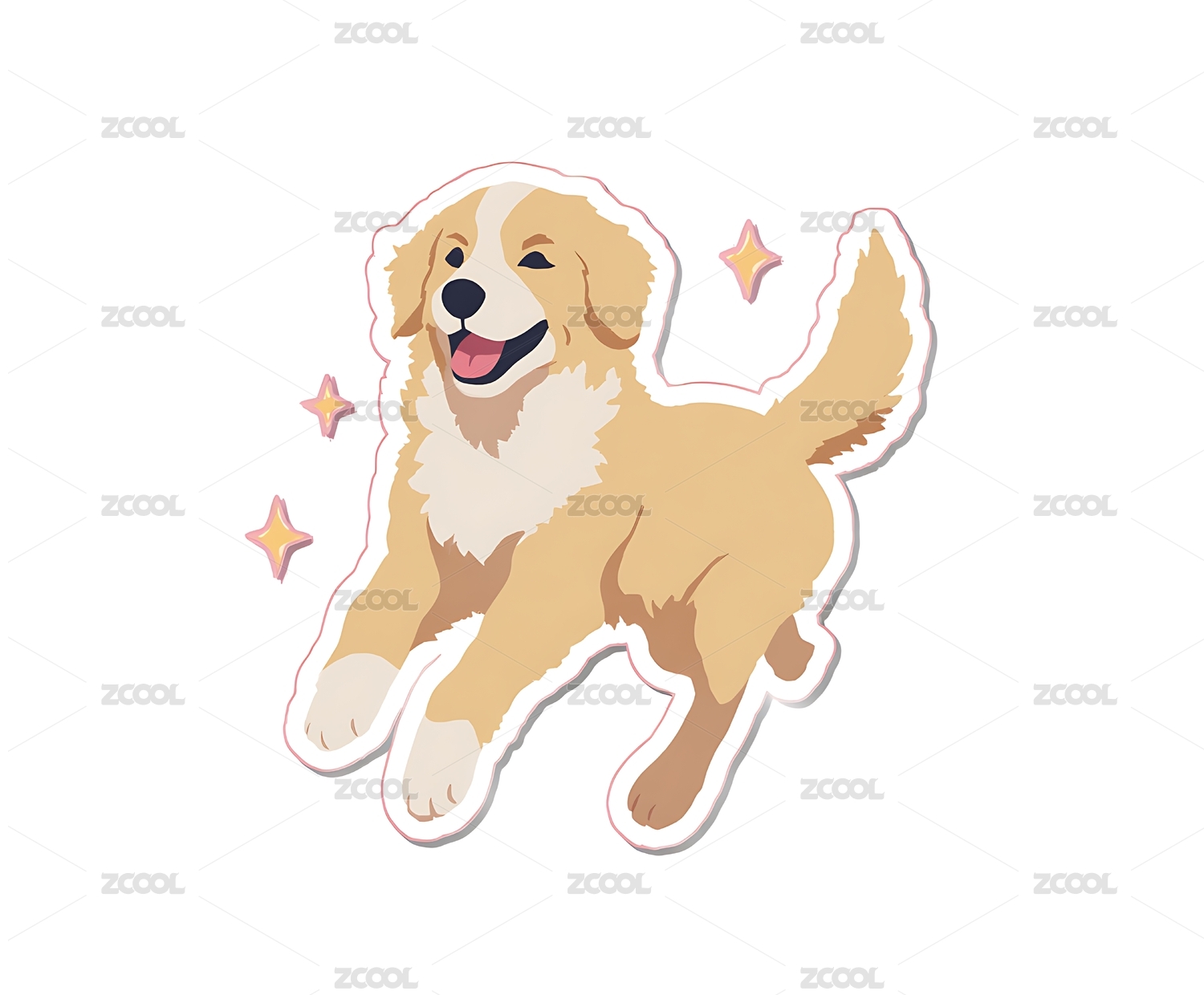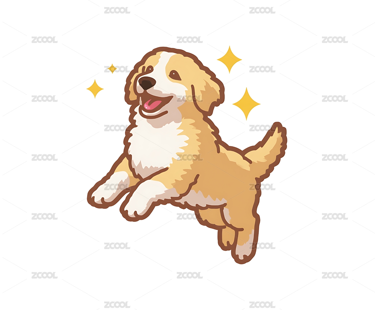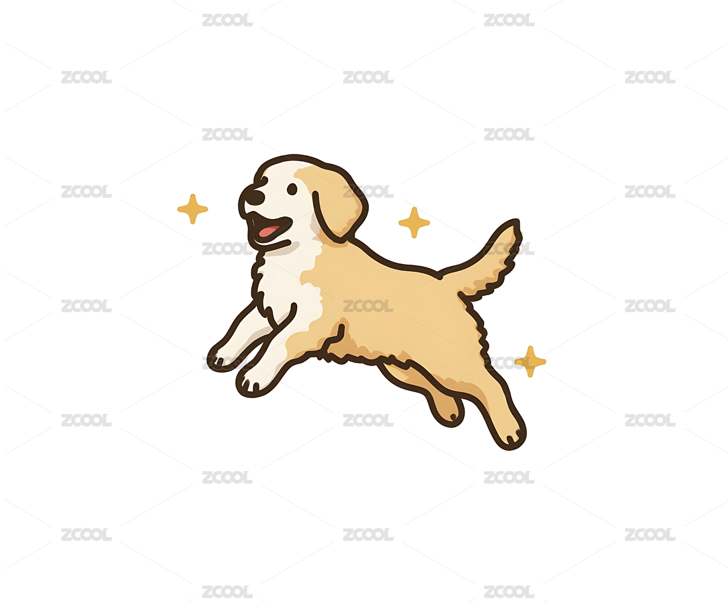 开心的金毛犬插画