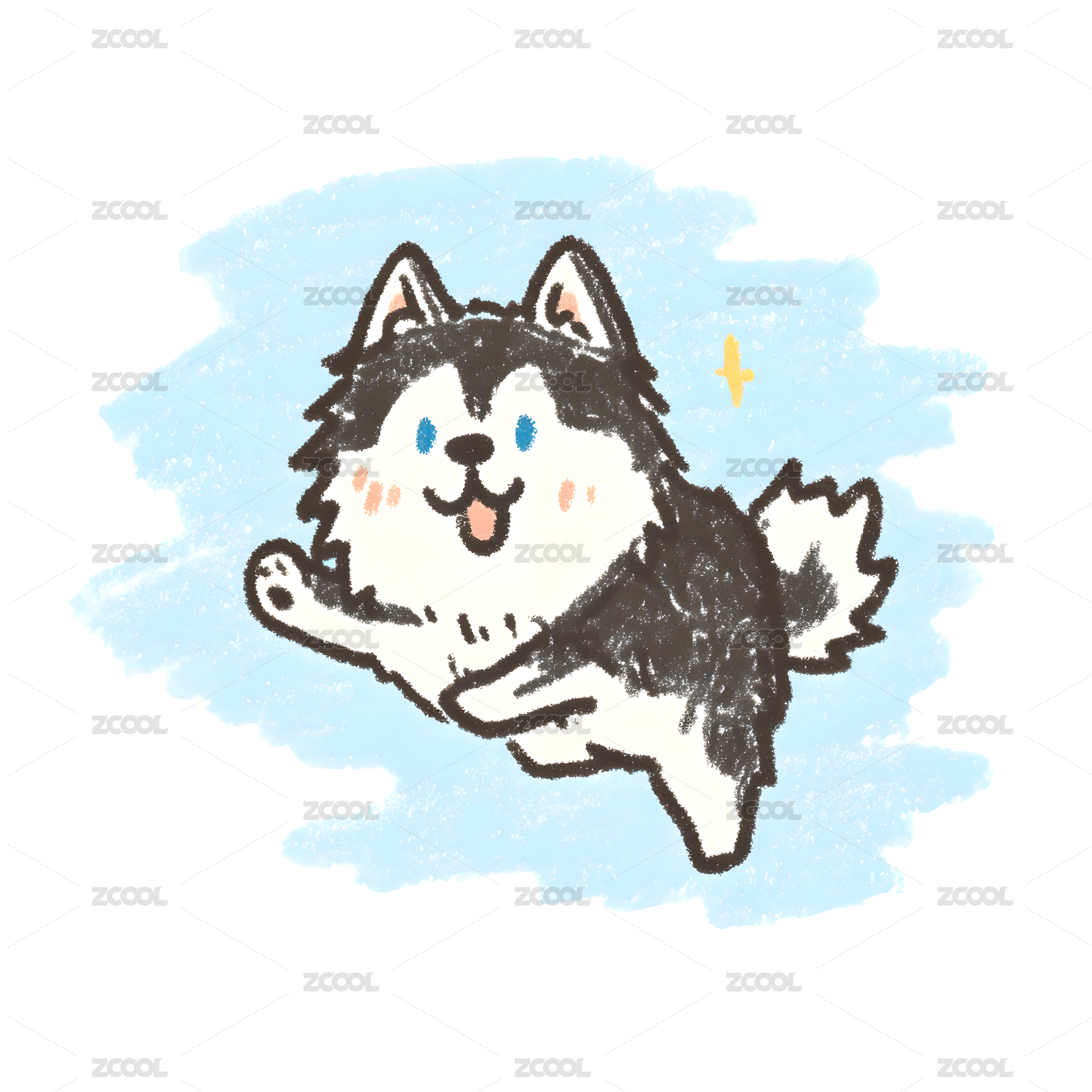 Q版哈士奇跃起欢跳